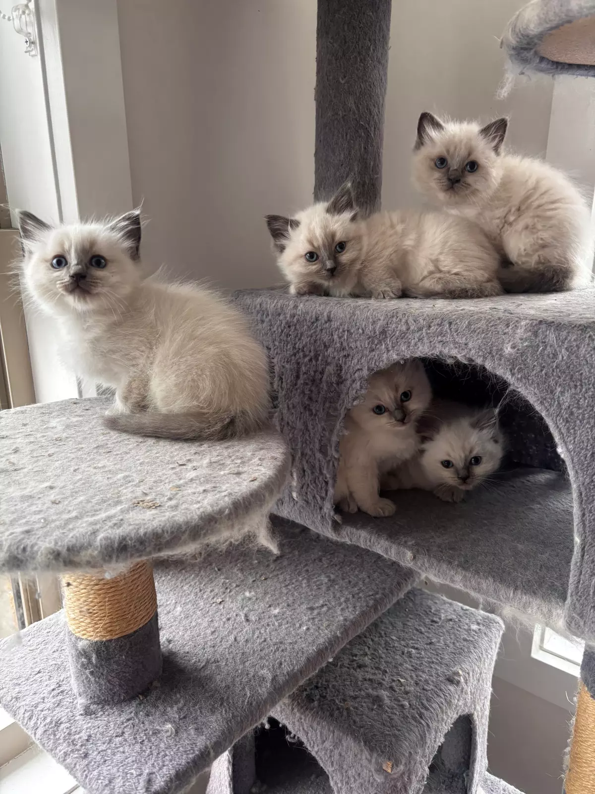 We have 5 pure-bred Blue Point Ragdoll Kittens, ready to be rehomed for their forever home.