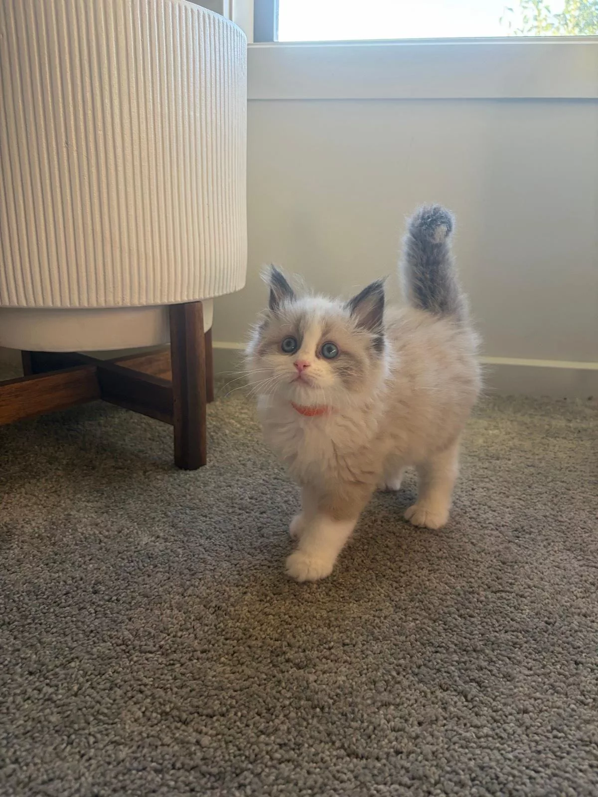 Orange – Seal Mitted Bi-Coloured Ragdoll (Girl) with a stunning white-tipped tail 🤍