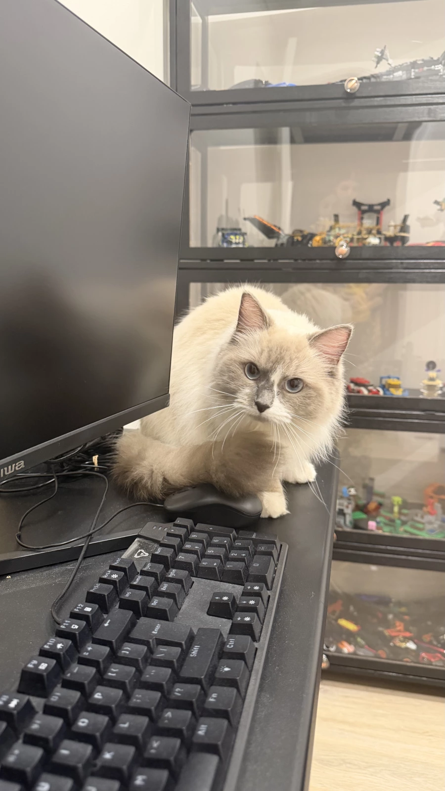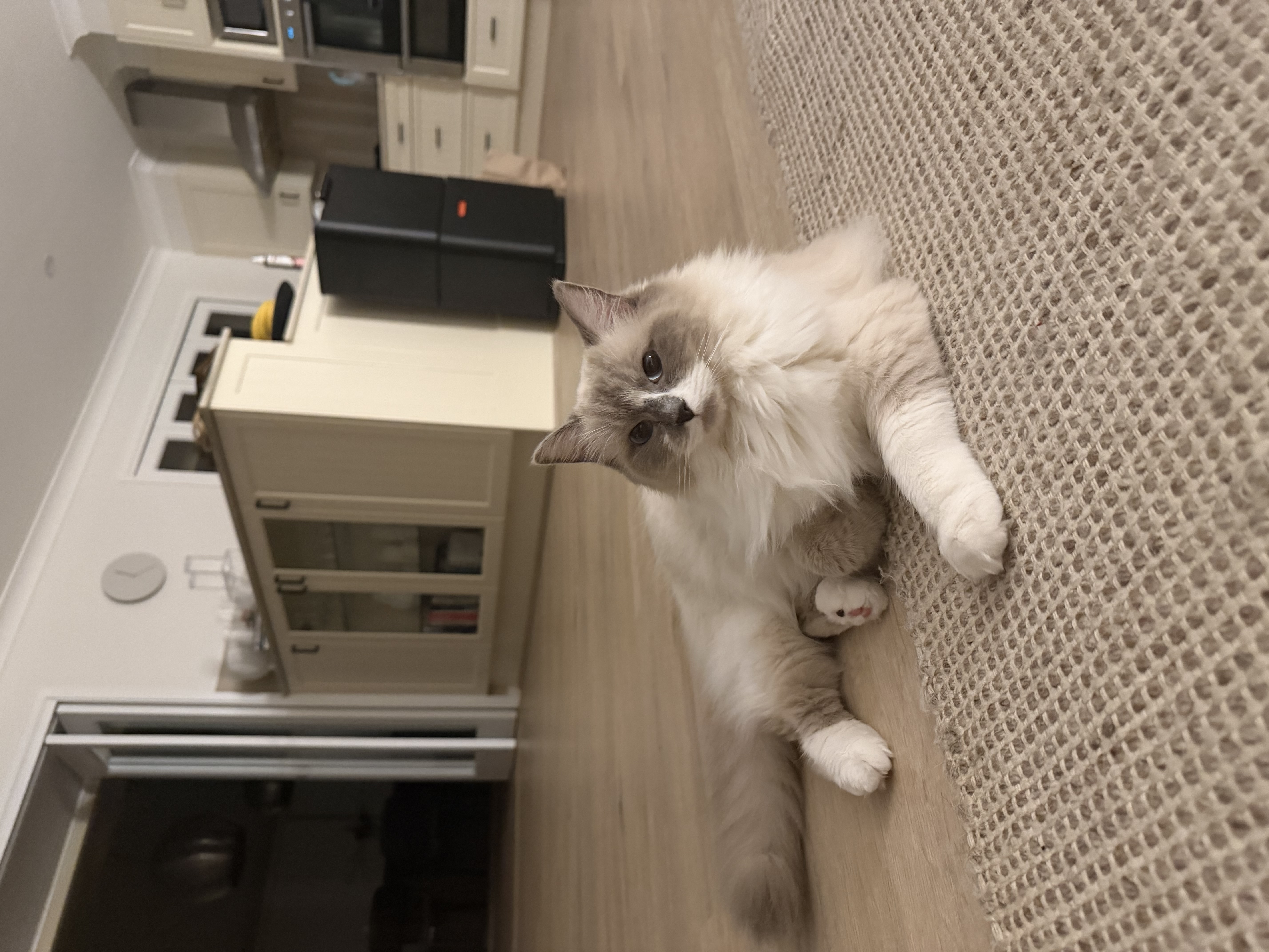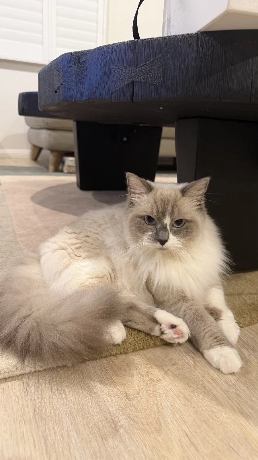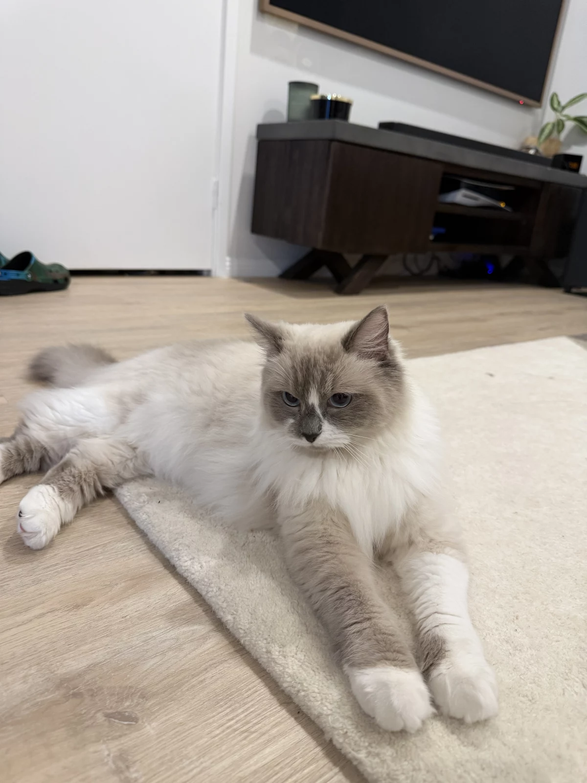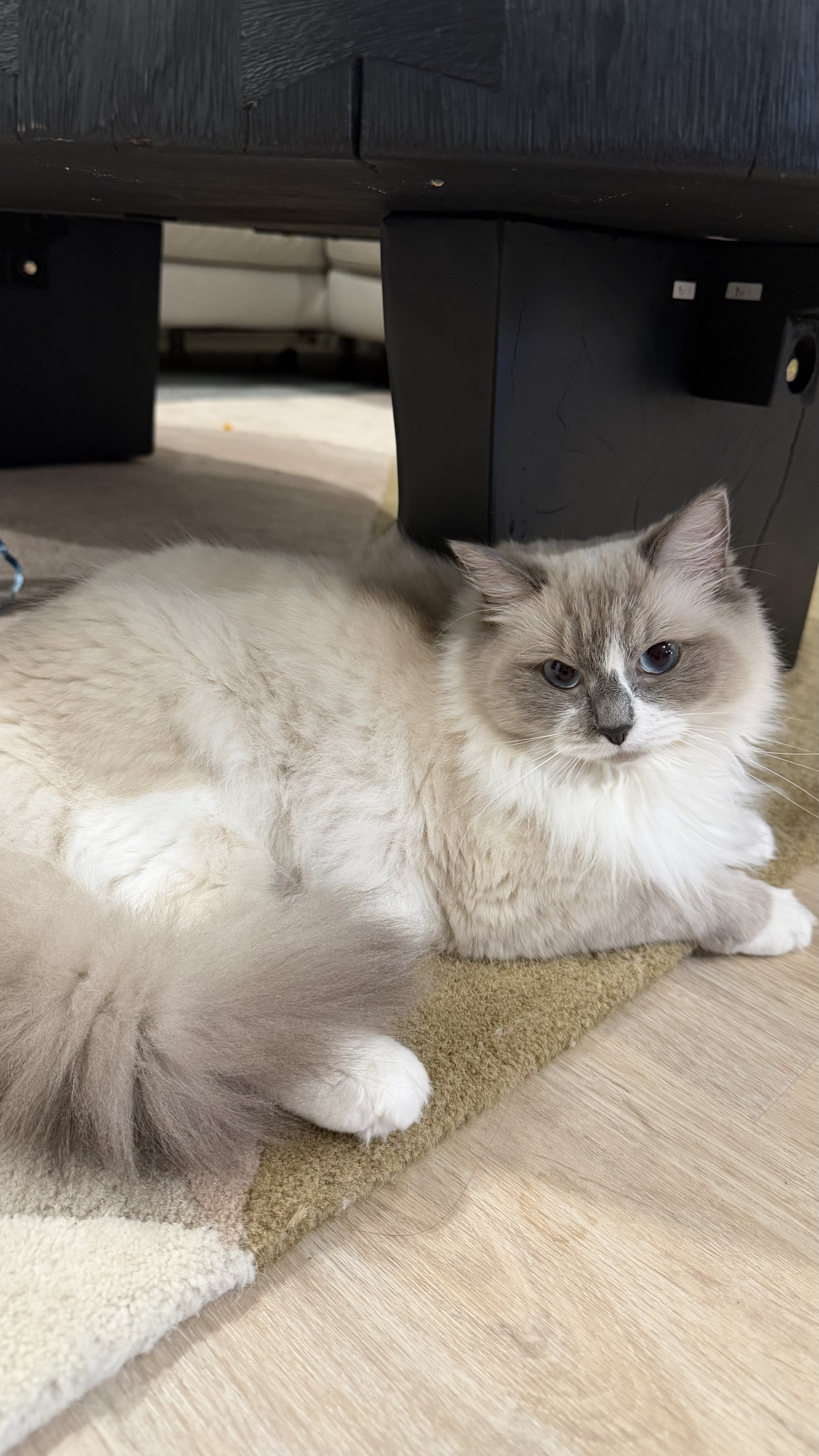 She’s a beautiful 1-year-old ragdoll girl with a soft, fluffy coat and striking blue eyes. She has a calm and gentle personality, loves being around people, and enjoys relaxing in cozy spots around the house. She’s affectionate, easygoing, and well-suited to indoor living, making her a perfect companion for someone looking for a sweet and low-maintenance cat.