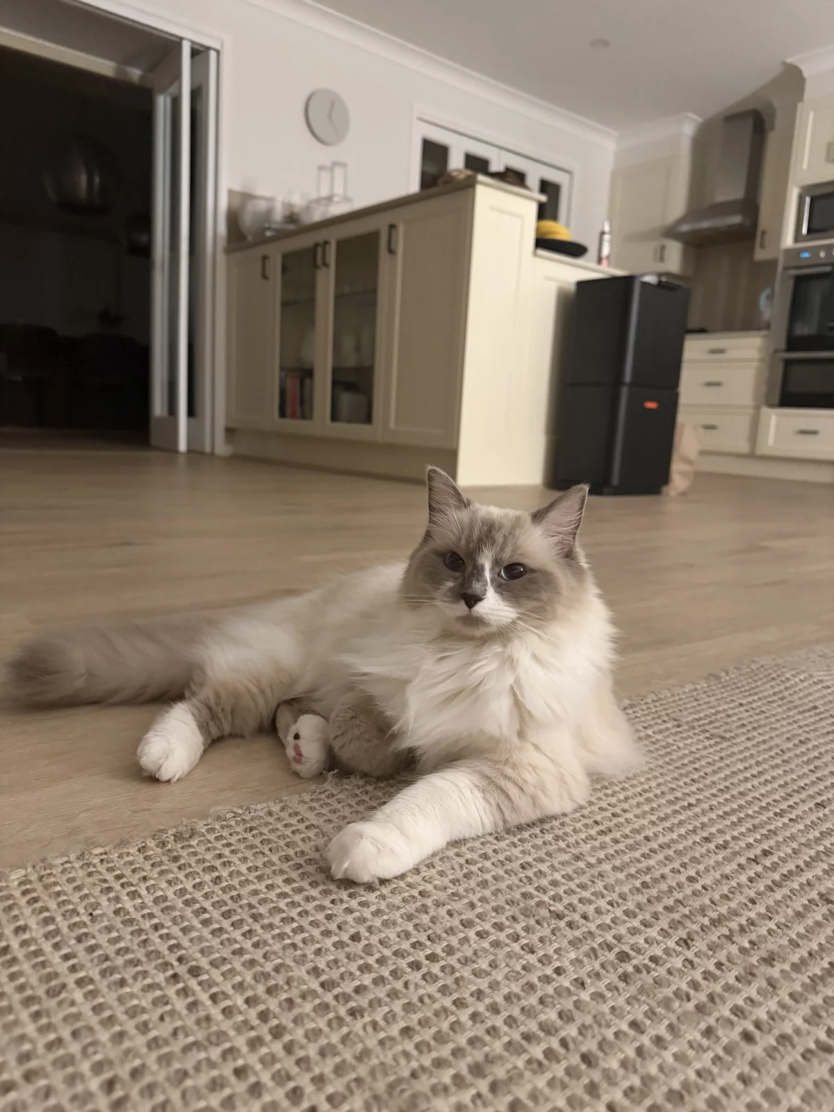 We have a beautiful 1 year old ragdoll girl with a soft, fluffy coat and striking blue eyes. She has a calm and gentle personality, loves being around people, and enjoys relaxing in cozy spots around the house. She’s affectionate, easygoing, and well-suited to indoor living, making her a perfect companion for someone looking for a sweet and low maintenance cat.