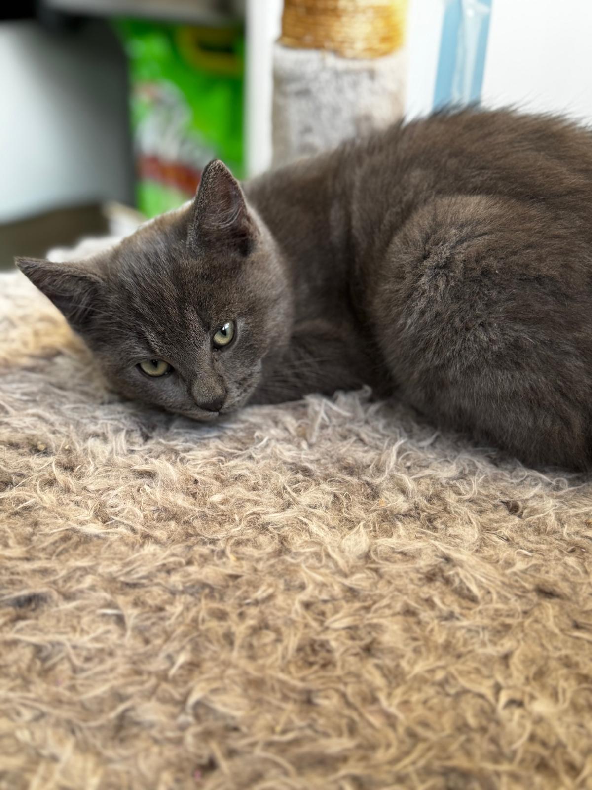 This super cute, five-month-old grey kitten is absolutely free for a good home, making this a wonderful opportunity to acquire a well-socialized pet. He is a delightful mix of Ragdoll and domestic lineage, inheriting the Ragdoll's signature placid temperament and likely a degree of their stunning coat length and blue eyes. At 5 months old, he is past the fragile stage and is ready to bond deeply with a new owner.