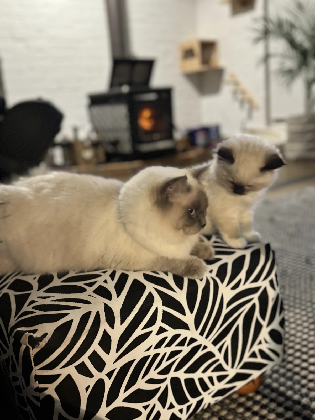 All our kittens are raised with other cats and have exposure to dogs. They all live amongst our family and are comfortable with everyday noises and activities, and lots of snuggles.