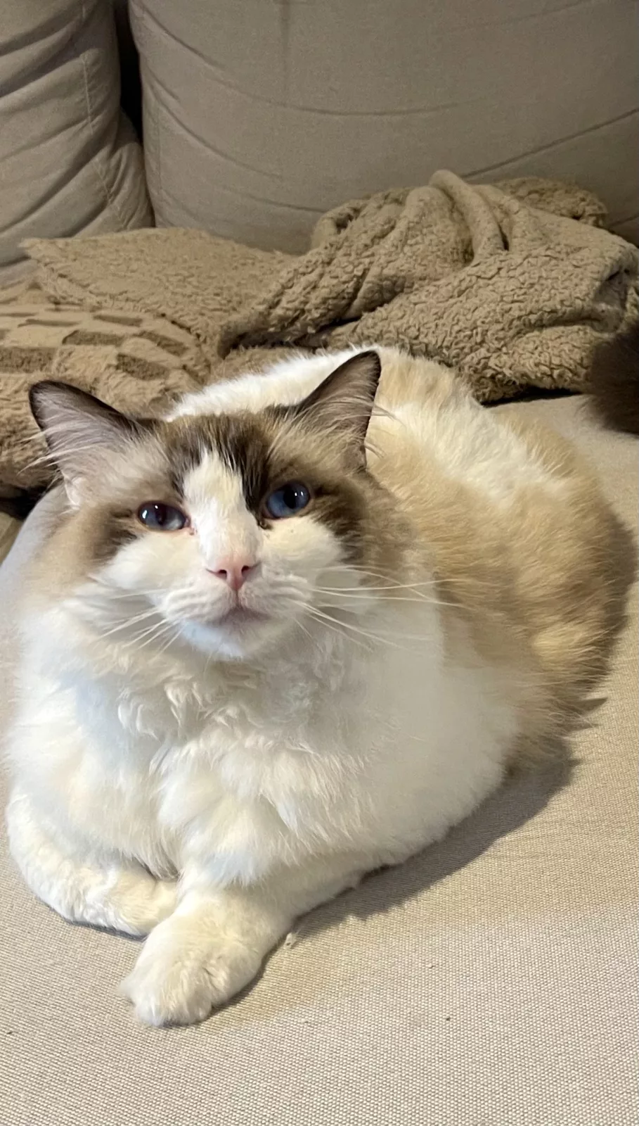 Binx is a stunning Ragdoll with a soft, plush coat and a calm, affectionate nature. He adores human company and will happily follow you from room to room, always ready for cuddles or a nap beside you. This gentle boy thrives on affection and would be perfect for a family or individual who enjoys companionship and quiet moments at home. Binx is healthy, litter trained, and well-behaved indoors. With his loving temperament and beautiful appearance, he’s sure to bring warmth and comfort to his new home.