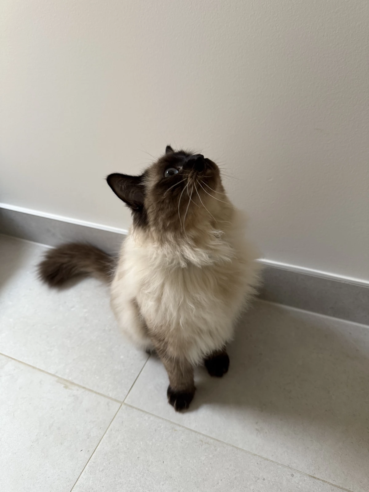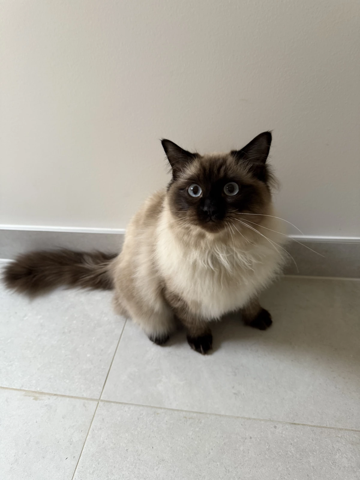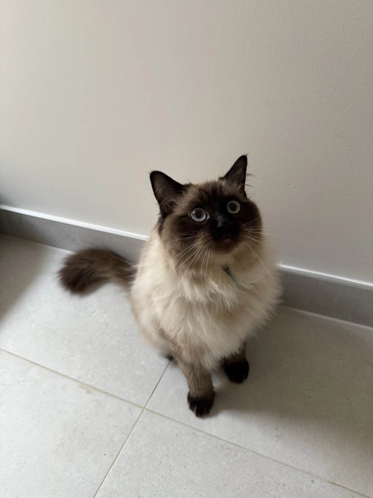 Regrettably, despite his exceptional qualities, it has become abundantly clear that we have unforeseen cat allergies in our home, forcing us to make the difficult decision to find a new, loving family for him. He has a truly lovely nature, still very playful in the morning and evening, but he also absolutely loves company. He frequently demonstrates his placid and affectionate nature by sitting or sleeping calmly on my husband's home office desk while he works—a testament to the Ragdoll's desire to be near their people and their gentle, adaptable disposition.