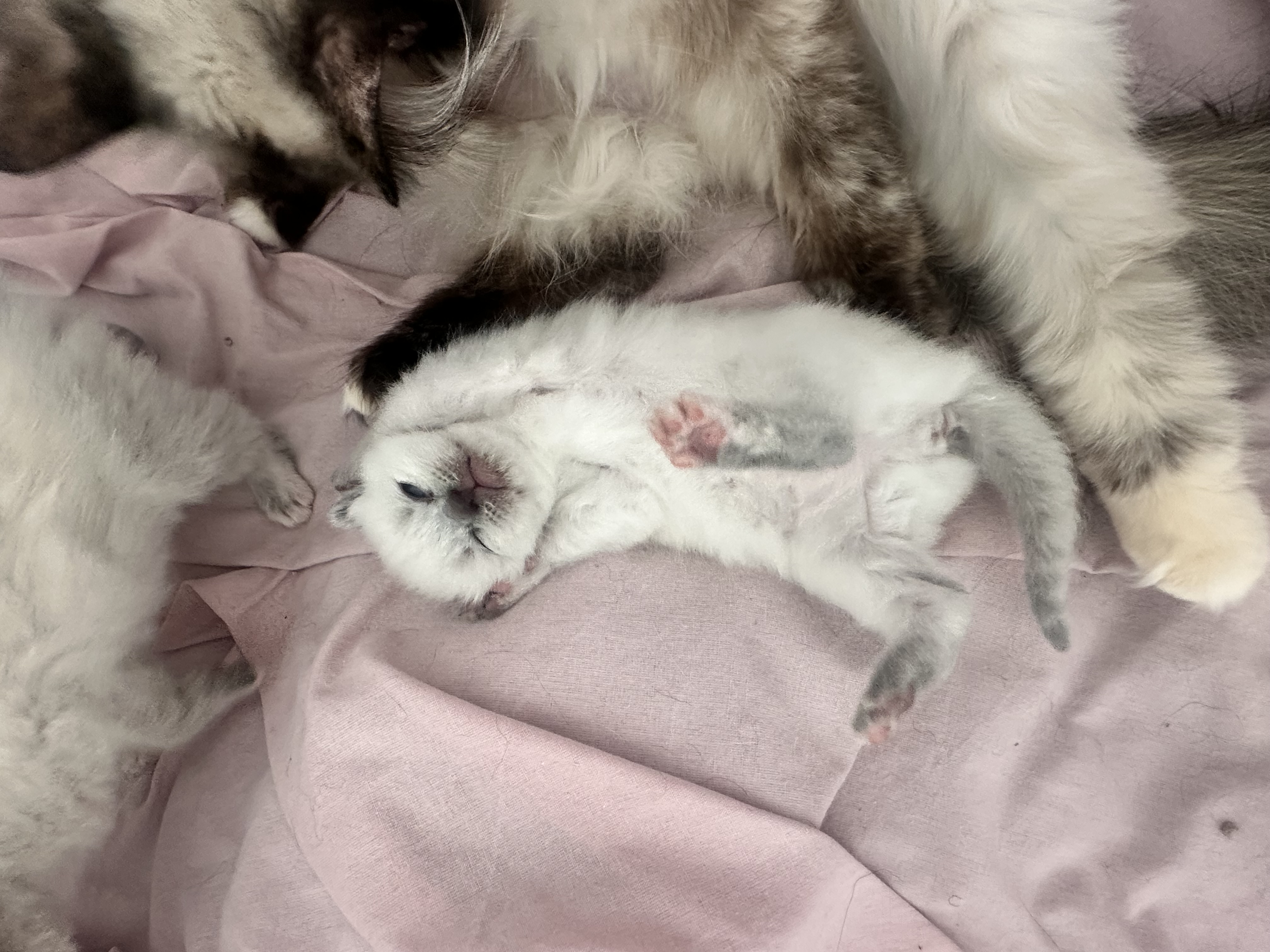 These kittens are notably very playful and extremely friendly, a defining characteristic of the Ragdoll breed, which is known for its dog-like devotion and non-aggressive demeanor. They have been extensively exposed to both kids and other animals, ensuring they are well-socialized and adaptable, which is crucial for this highly social breed. They have successfully transitioned to eating solid kitten food and are already nearly litter trained, demonstrating the Ragdoll's keen intelligence. For health assurance, they have been microchipped for permanent identification and have received preventative flea and tick treatment. These kittens are ready to offer their famously relaxed and cuddly companionship to a devoted new family.