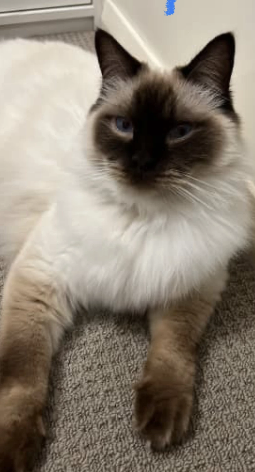 Skittles is a beautiful pure breed Rag doll he is very affectionate and toilet trained he is an indoor cat and does not claw, he is very well trained and adaptable.