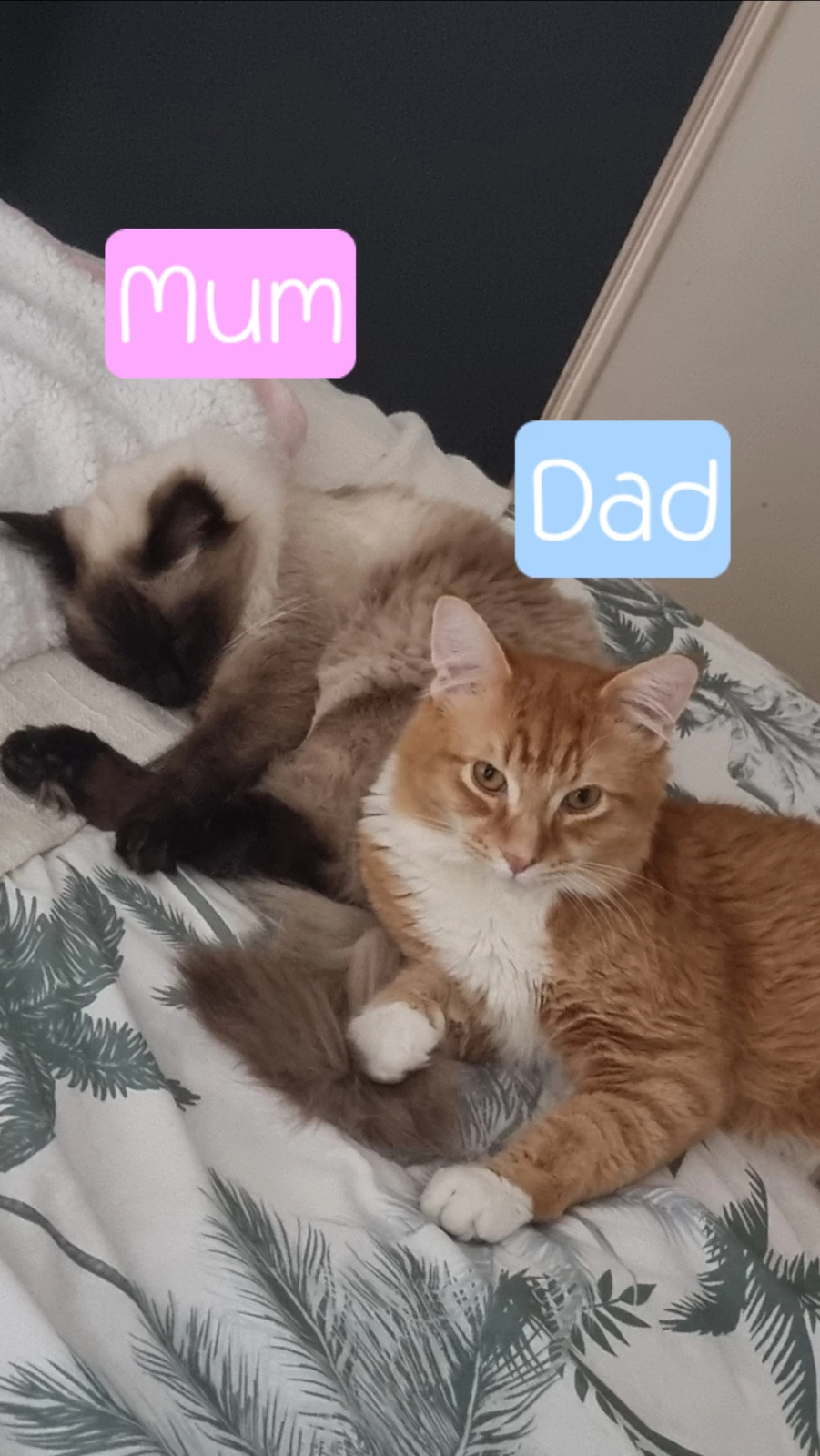 Mumβs a pure Seal Point Ragdoll (the queen herself π), and Dadβs a Ginger x floofy (ginger chaos certified π§‘).