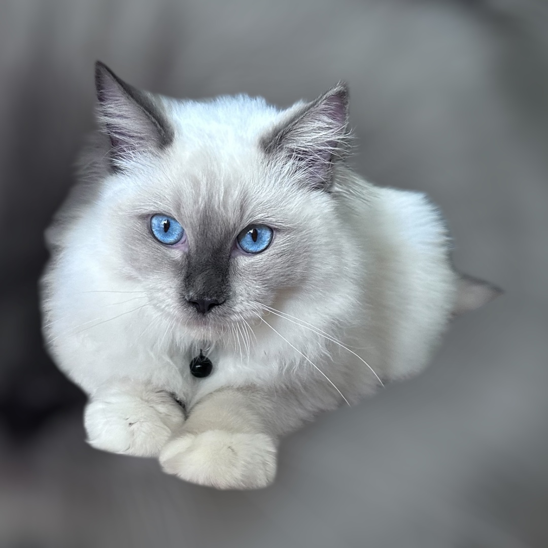 This is an opportunity to welcome a beautiful, young Ragdoll cat into your home. This lovely feline is 7 months old, placing them at a fantastic age where they are past the fragility of early kittenhood but still retain the curiosity and energy of a young cat.
