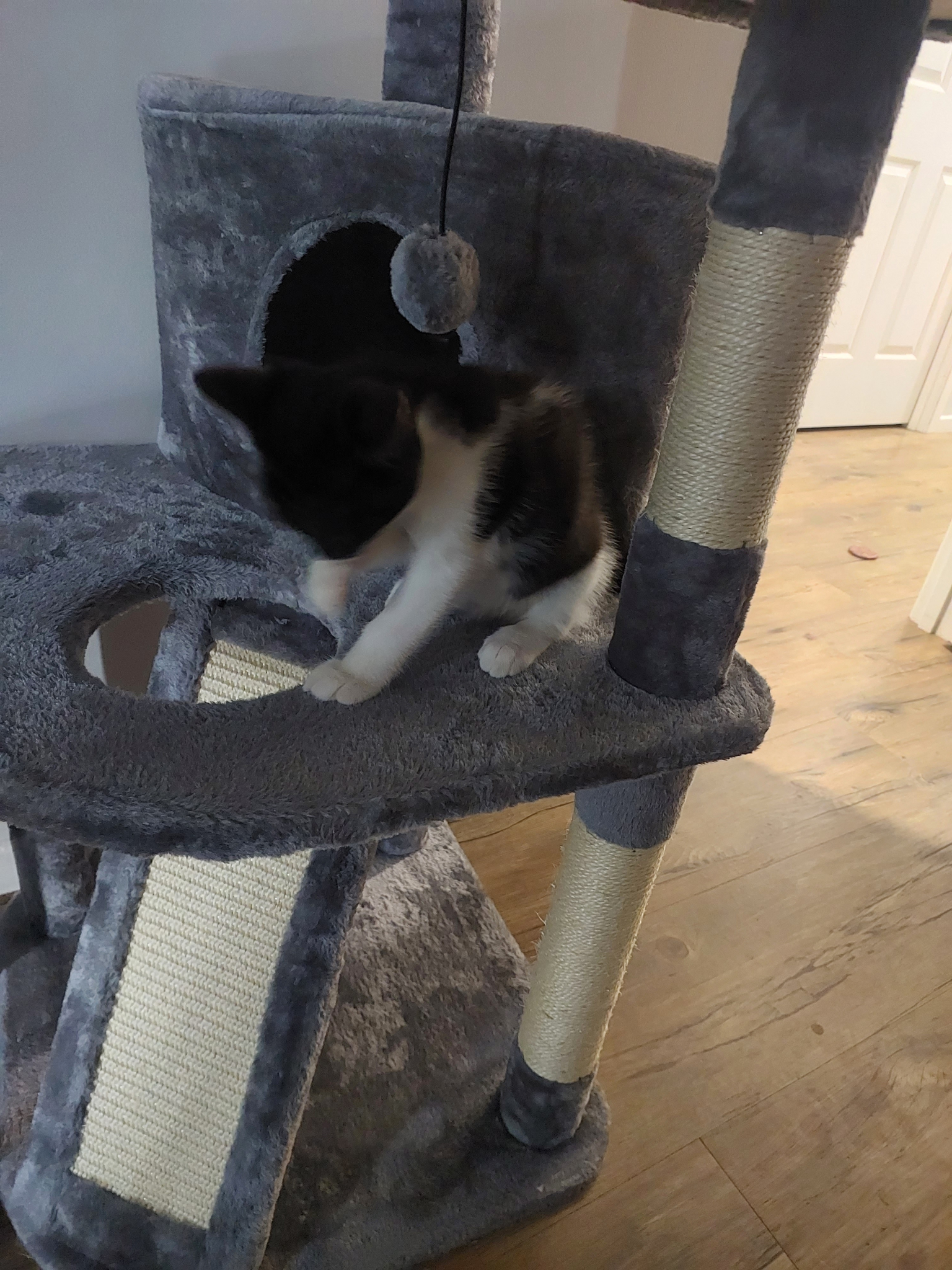 He is ready for his new home now, having been reliably Litter trained, wormed, and flea treated. The price includes a significant bonus: he will come with his brand new Cat Tree/Tower from Bunnings, ensuring he starts his new life with a secure and fun climbing space.