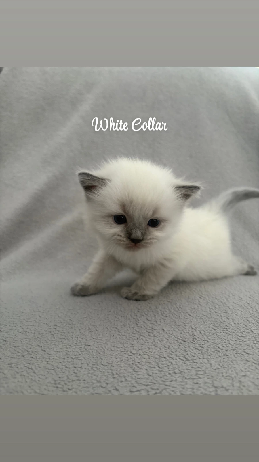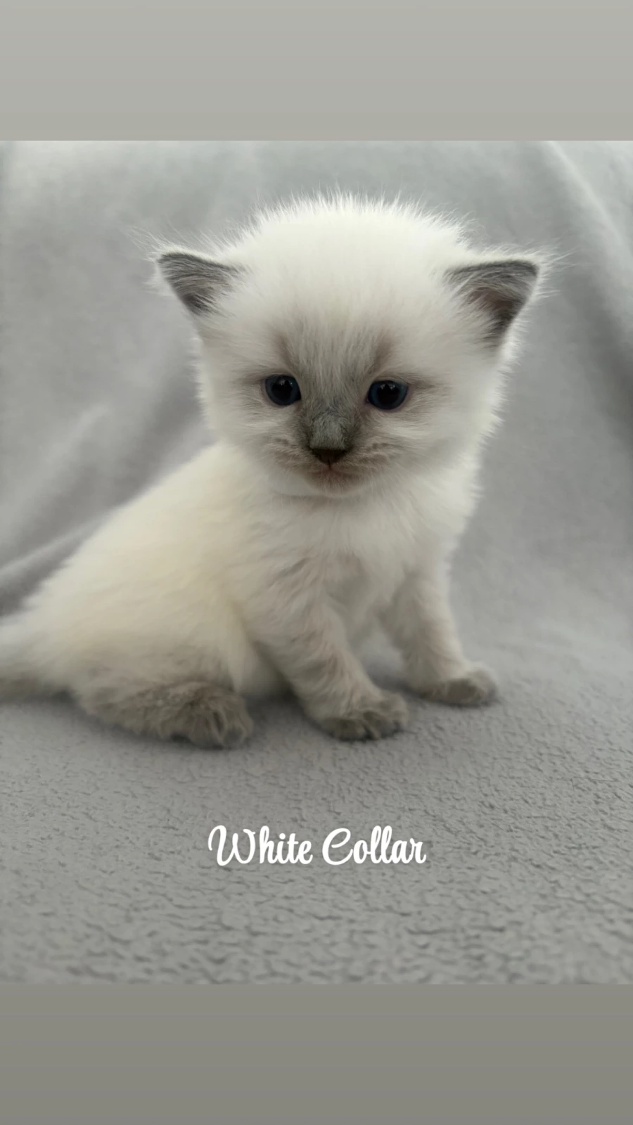 🤍 White Collar (Seal Point) – A beautiful mix of sweet and chill. He loves attention, gentle pats, and quiet cuddle time.