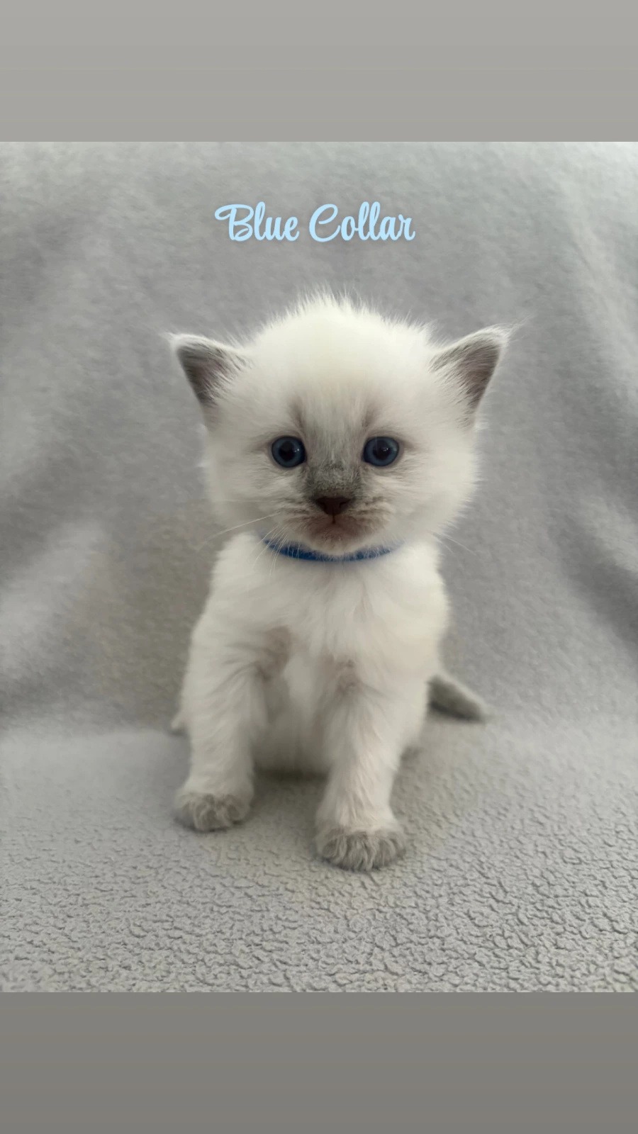 💙 Blue Collar (Seal Point) – Calm, gentle, and a total snuggle bug. He’s happiest curled up beside you or watching the world go by.