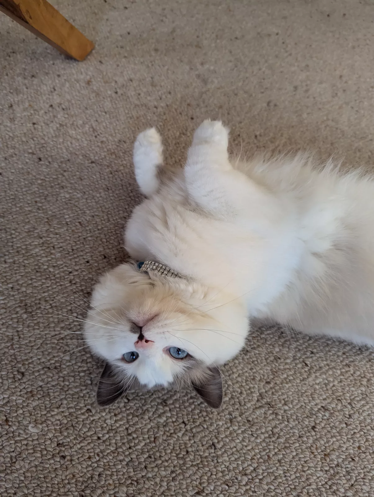 This handsome Blue Bicolour Ragdoll has a calm and affectionate personality that makes him an ideal indoor companion. He loves attention, enjoys gentle pats, and quickly forms bonds with his humans. Known for his intelligence, he understands routines well and uses the litter tray without issue. His soft coat and striking blue eyes make him as beautiful as he is charming. Raised in a loving home, he is well-adjusted and ready to bring warmth, comfort, and companionship to his next family. Perfect for anyone seeking a loyal and gentle pet.