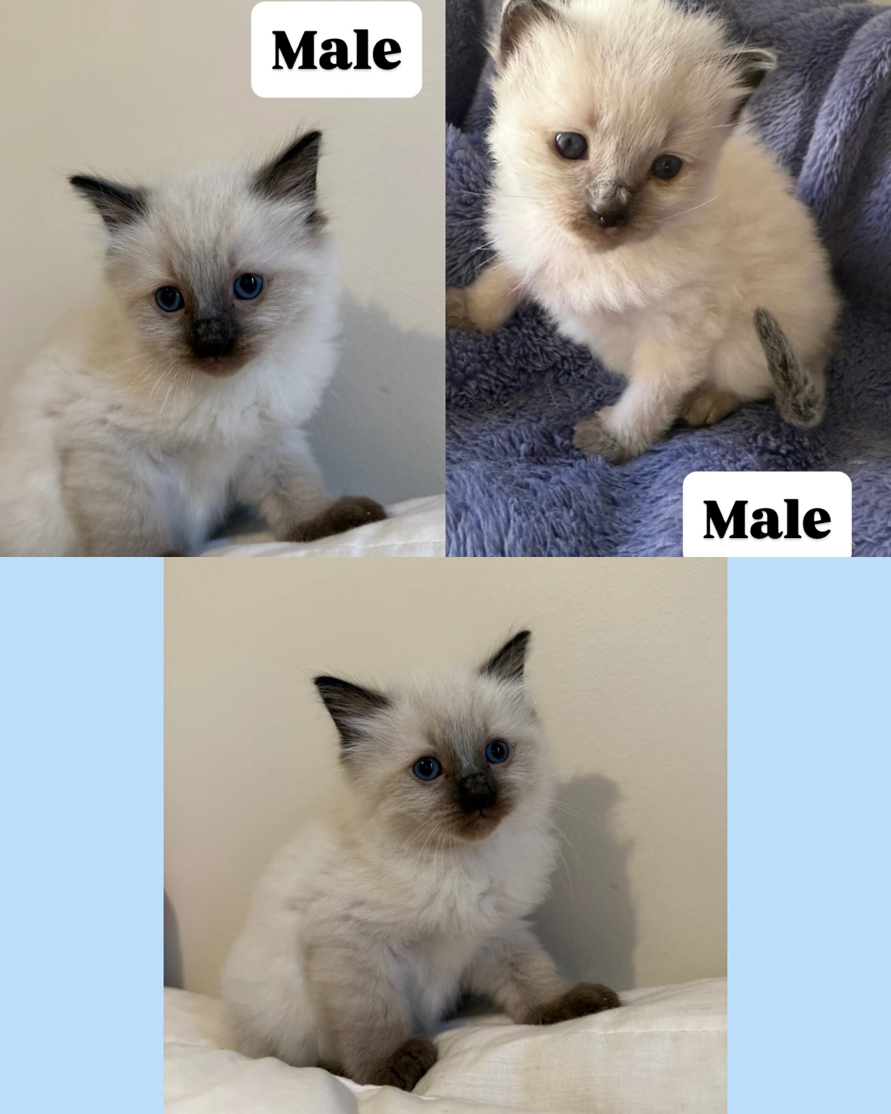 I’m are excited to offer two beautiful, purebred Ragdoll kittens—one male and one female—ready to join their forever homes! Raised in a loving, family-oriented environment, these sweet kittens have been showered with attention and care from day one.