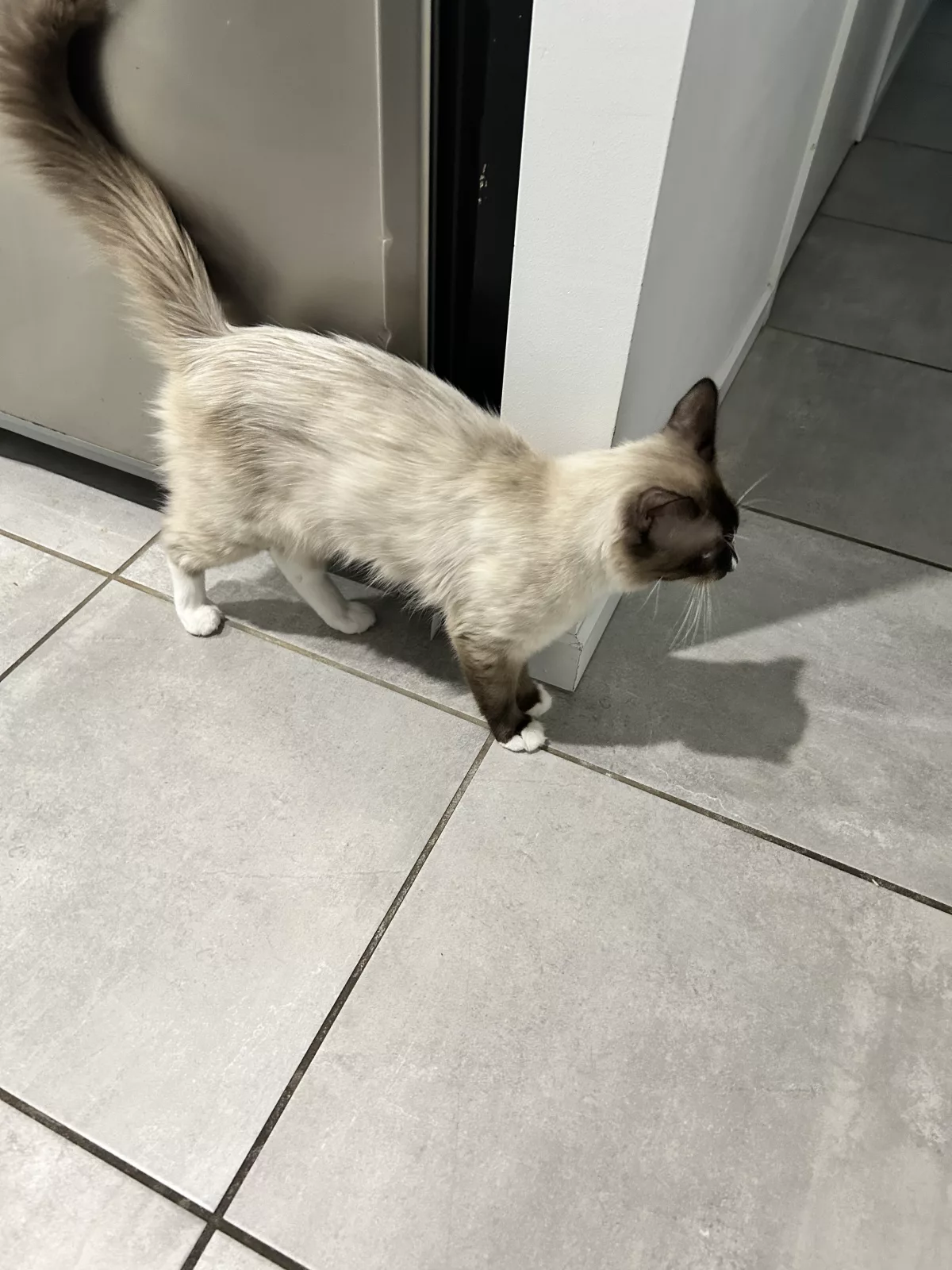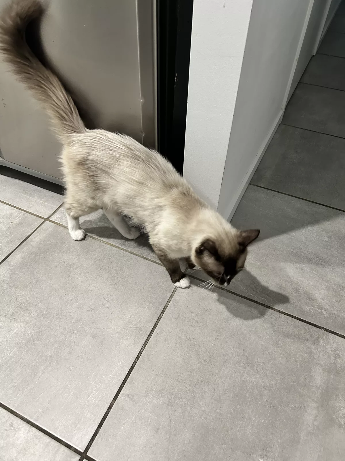 This is a gorgeous Ragdoll cat, identifiable by their desirable cappuccino brown and fluffy colouration—which likely describes a beautiful Chocolate Point or Lilac Point. This cat exhibits the classic, devoted Ragdoll temperament, being very affectionate and absolutely loves pats and cuddles, thriving on close physical contact with their human family.