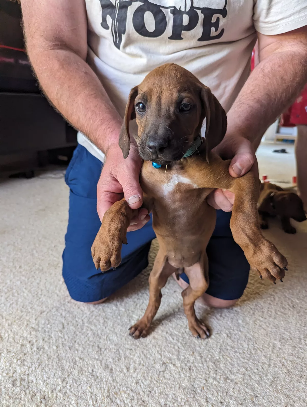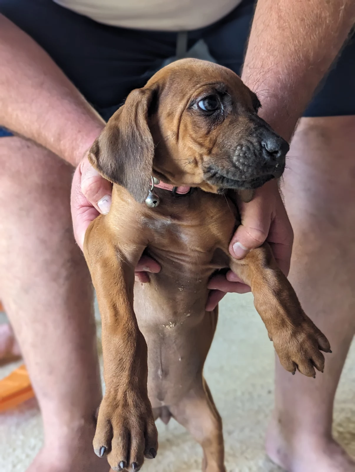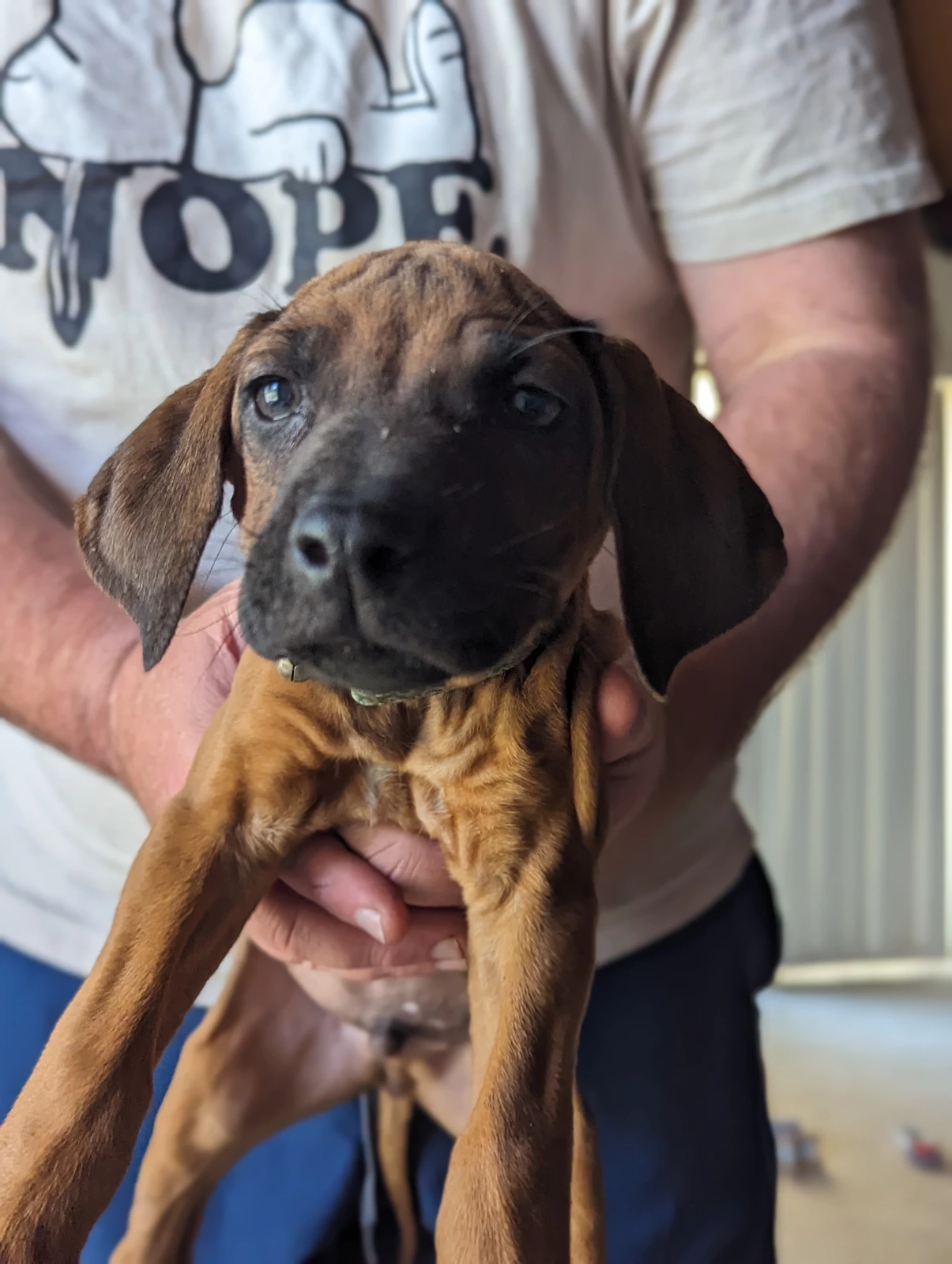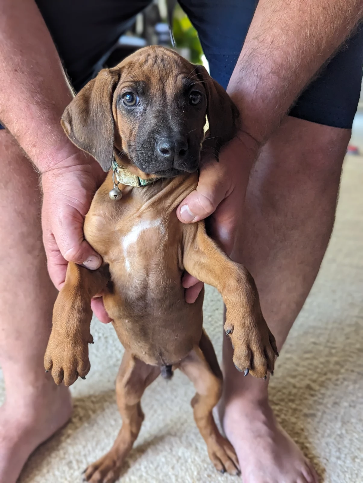 Rhodesian Ridgeback pups. Our pups are showing off their development each day with increased intelligence, energy and playfulness which is what the beautiful breed of Rhodesian Ridgeback are known for. All pups are now 7 weeks of age and self sufficient with eating and drinking. They have been vet checked, vaccinated and microchiped all in excellent health. all pups are socialised with kids and love snuggles and enjoy exploring with mum and dad . All our dogs have had the recommended health checks associated with Rhodesian Ridgebacks. You can contact me to come and view pups they are all adorable 6 female 4 male 1 female is a liver nose
