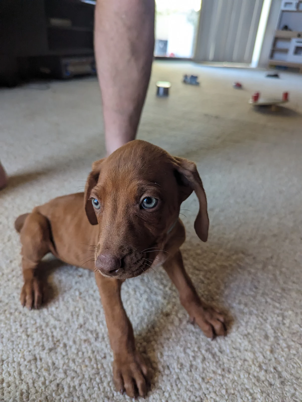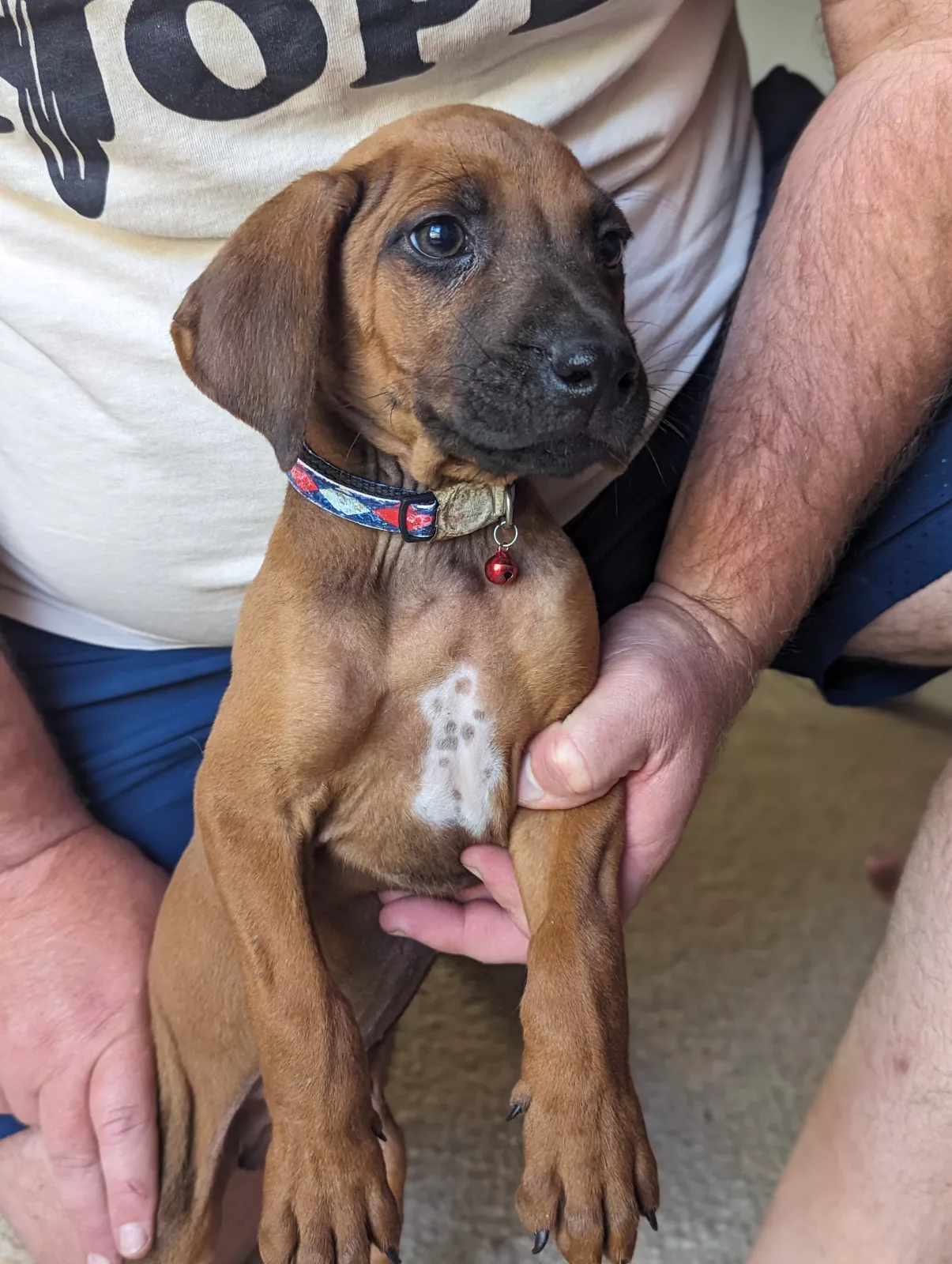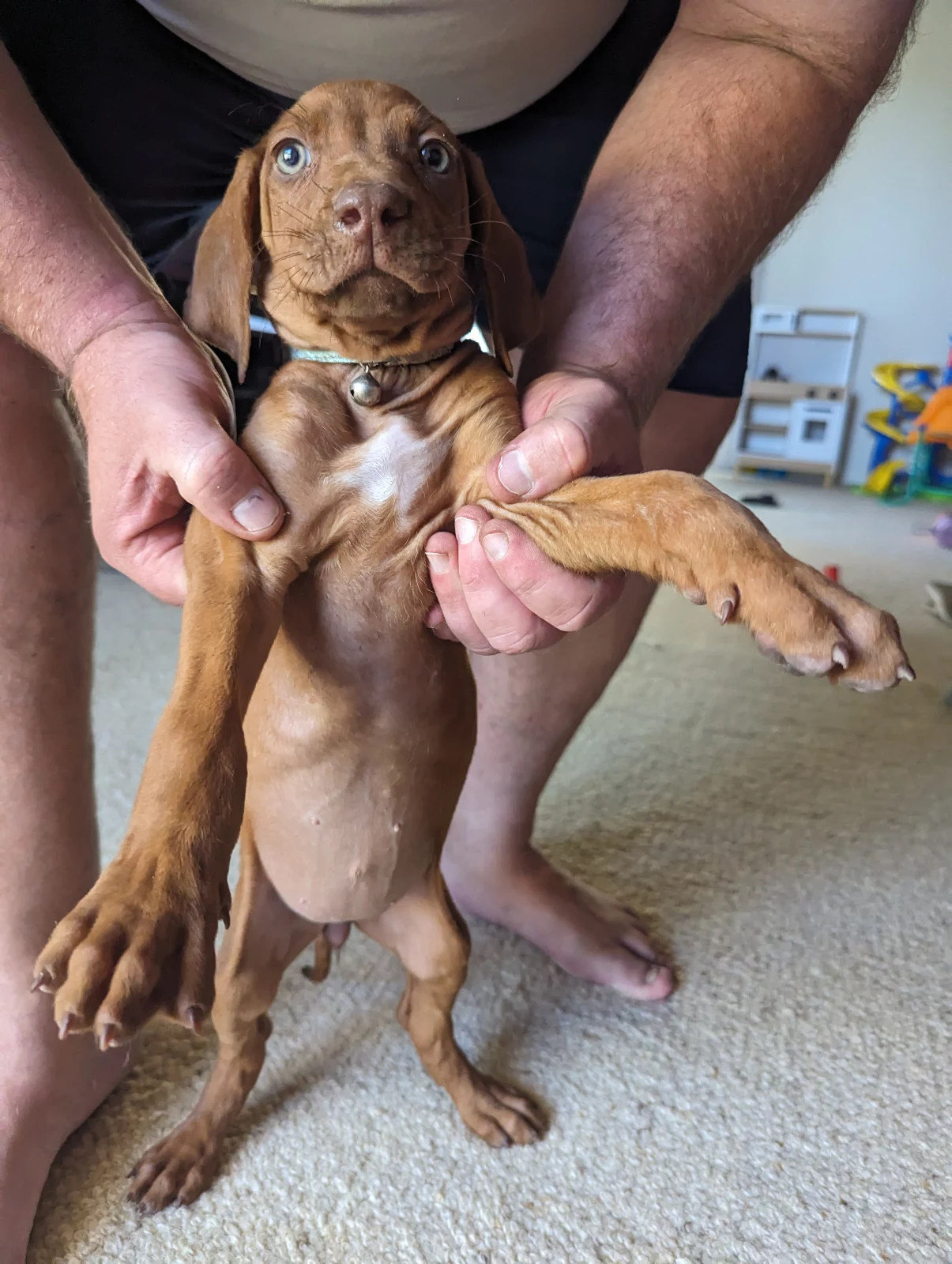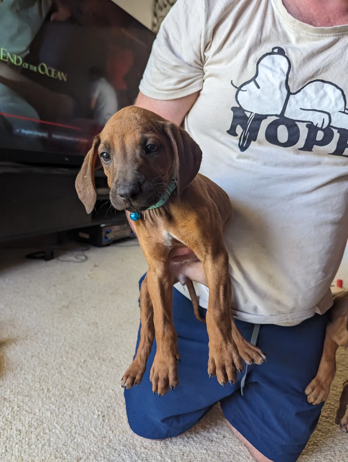 Rhodesian Ridgeback pups. Our pups are showing off their development each day with increased intelligence, energy and playfulness which is what the beautiful breed of Rhodesian Ridgeback are known for. All pups are now 7 weeks of age and self sufficient with eating and drinking. They have been vet checked, vaccinated and microchiped all in excellent health. all pups are socialised with kids and love snuggles and enjoy exploring with mum and dad . All our dogs have had the recommended health checks associated with Rhodesian Ridgebacks. You can contact me to come and view pups they are all adorable 6 female 4 male 1 female is a liver nose