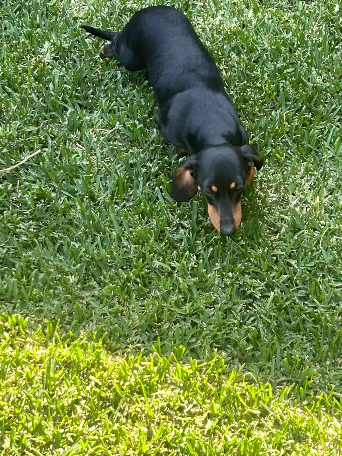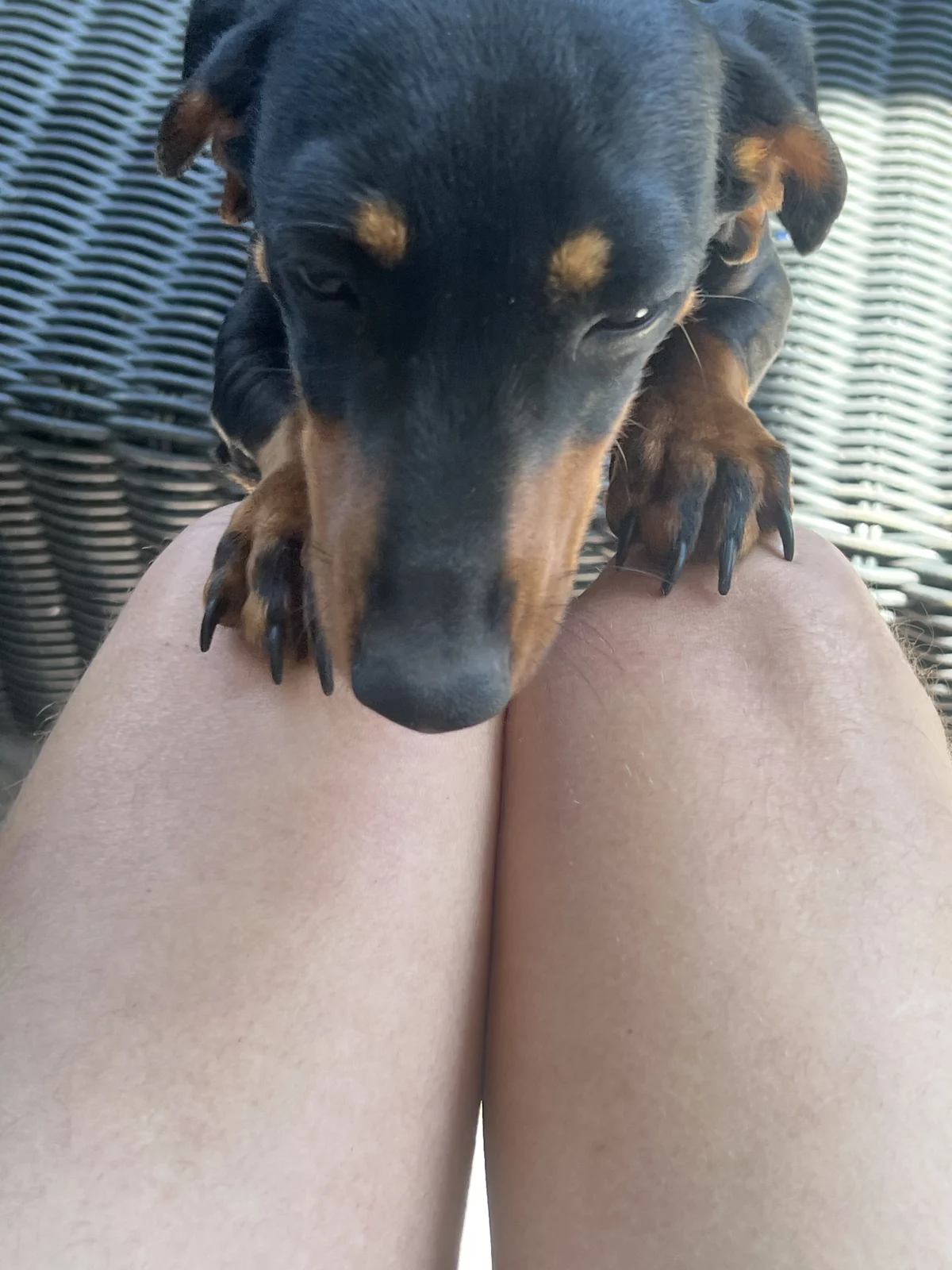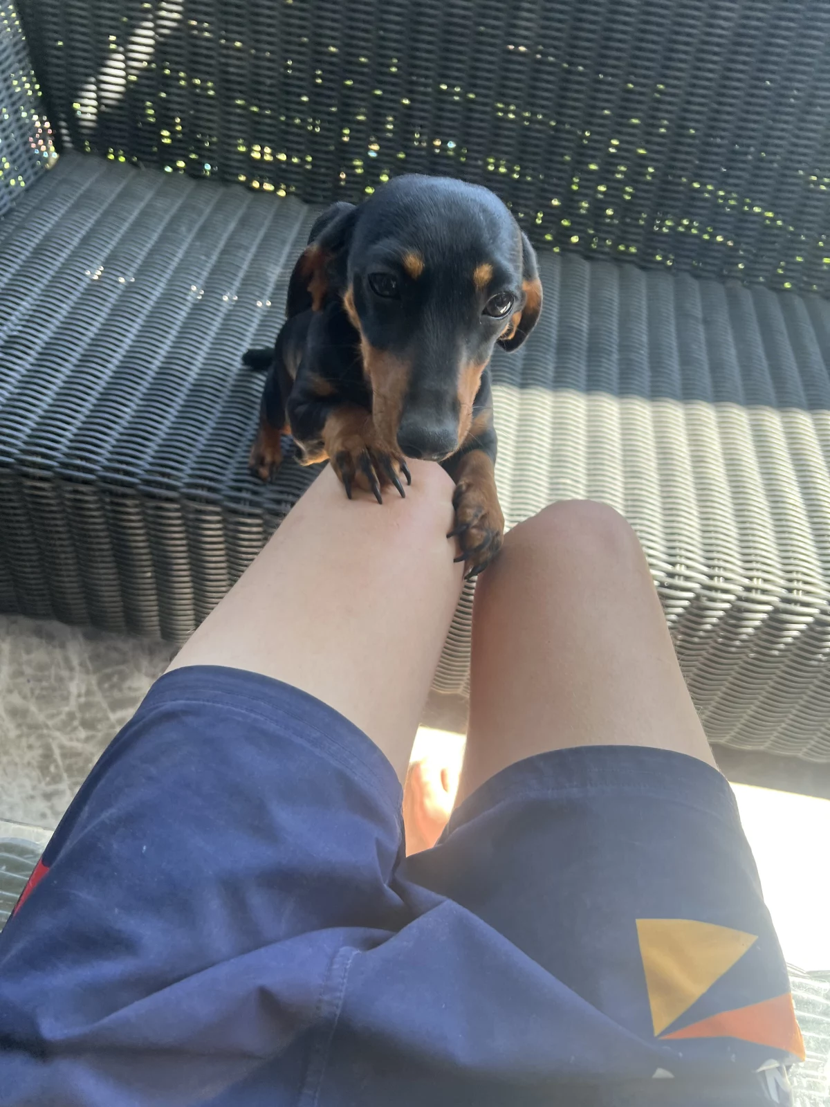 Rosie is a sweet-natured miniature dachshund who is nearly 1 year old and sadly in need of a new forever home. Due to relocation, we are unable to keep her as pets are not permitted where we are moving.