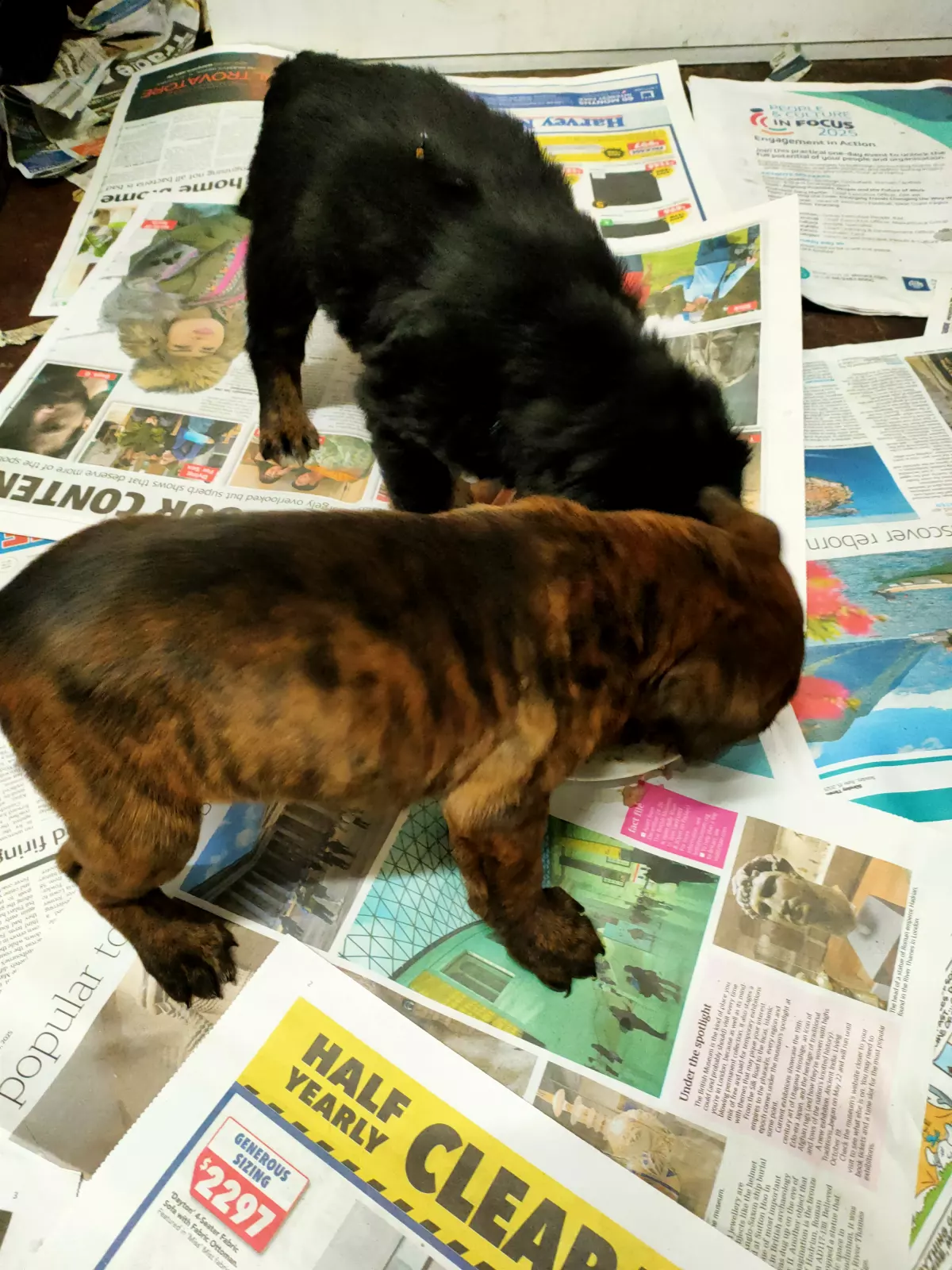 Dogs have access to: warm bedding, water at all times, ample space to exercise, natural light
