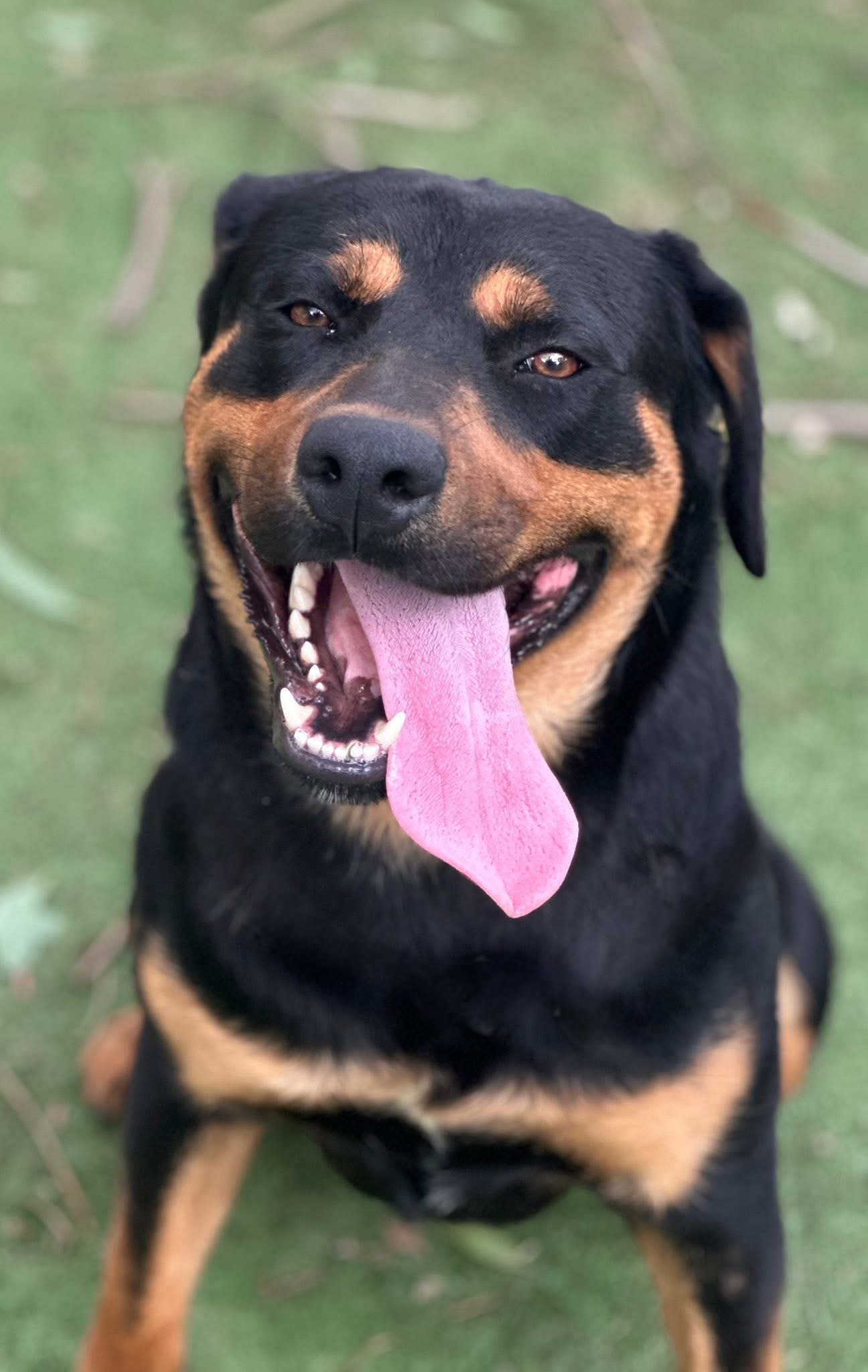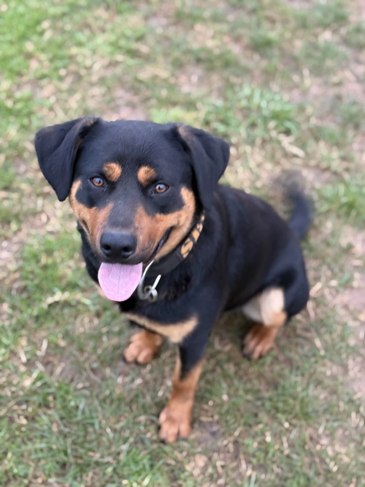 This gorgeous 11-month-old Rottweiler Kelpie cross is a black-and-tan bundle of love and energy! With his sleek coat and bright eyes, he's as handsome as he is huggable. Fully vaccinated, microchipped, flead, and wormed—he's all set for his next adventure.
