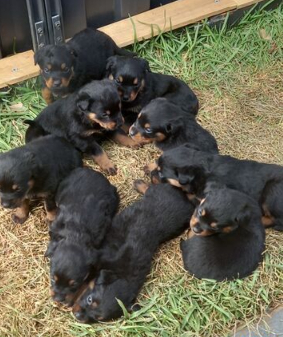 Puppies are vetchecked , vaccinated, microchipped and wormed, will also provide specialist diet plan to support new Rottweiler puppy owners if requested. They will be ready to go to their forever homes from 3rd of July. Located in Darley 3340 . Puppies photos taken at 4 weeks old.