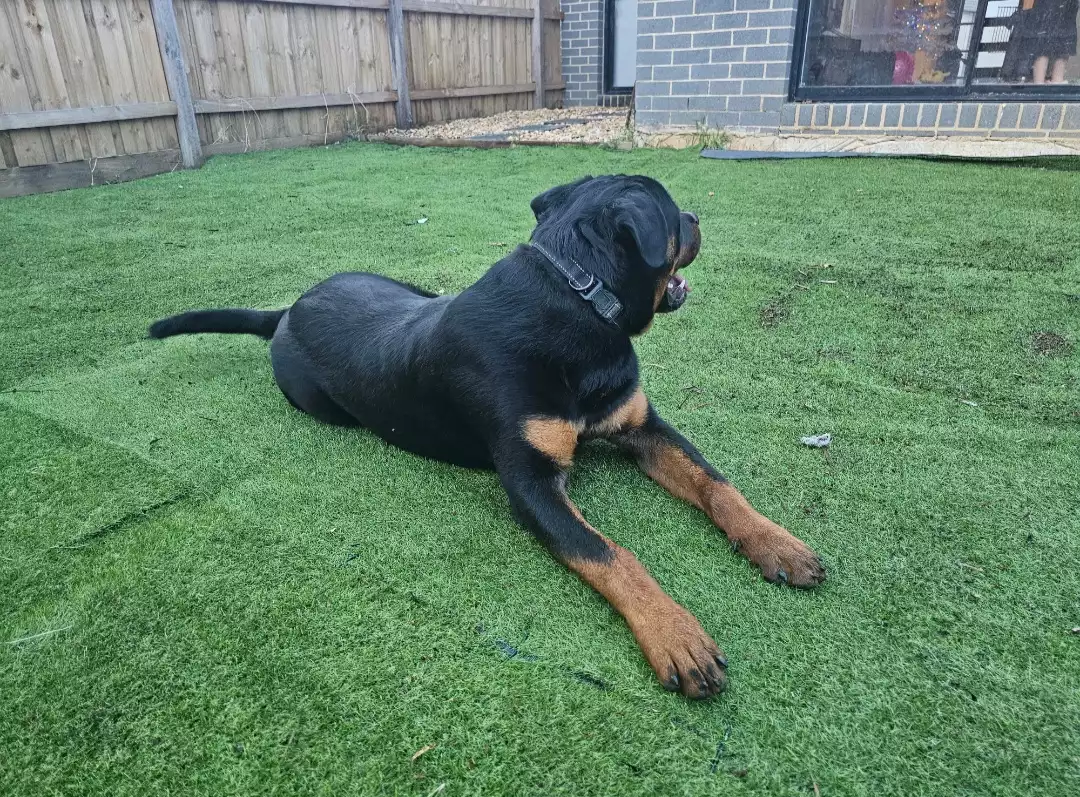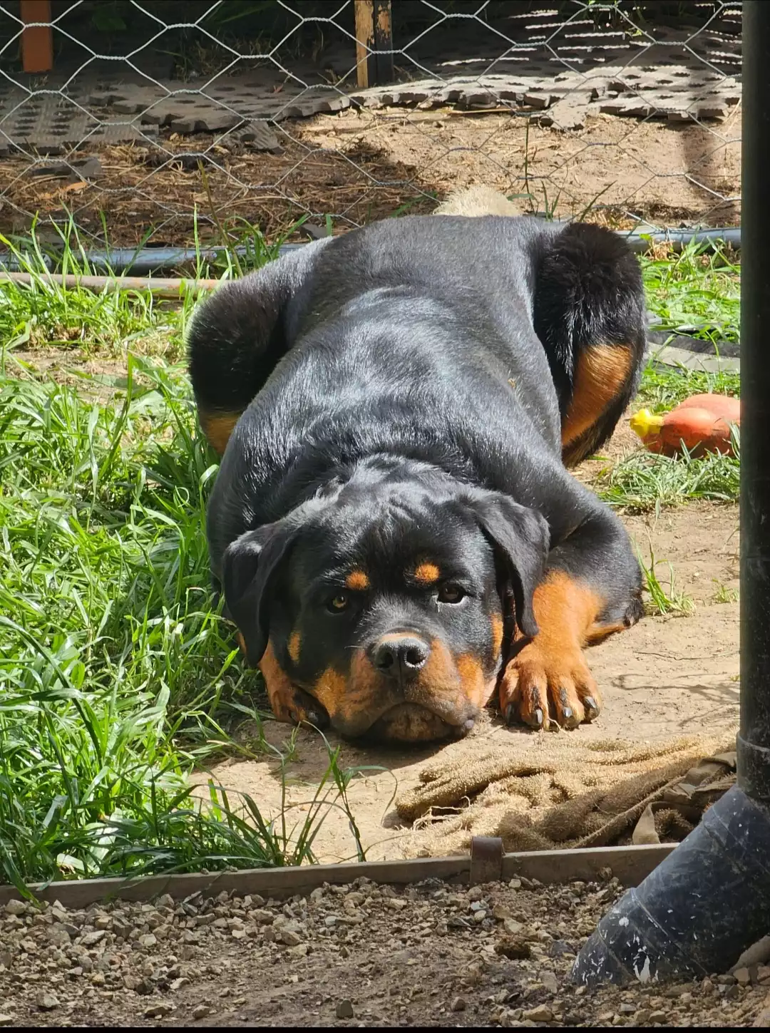 Grizzly is an active dog who enjoys attention, interaction and being part of family life. Like most Rottweilers, he is intelligent, loyal and protective, making him both a great companion and a reliable guardian.