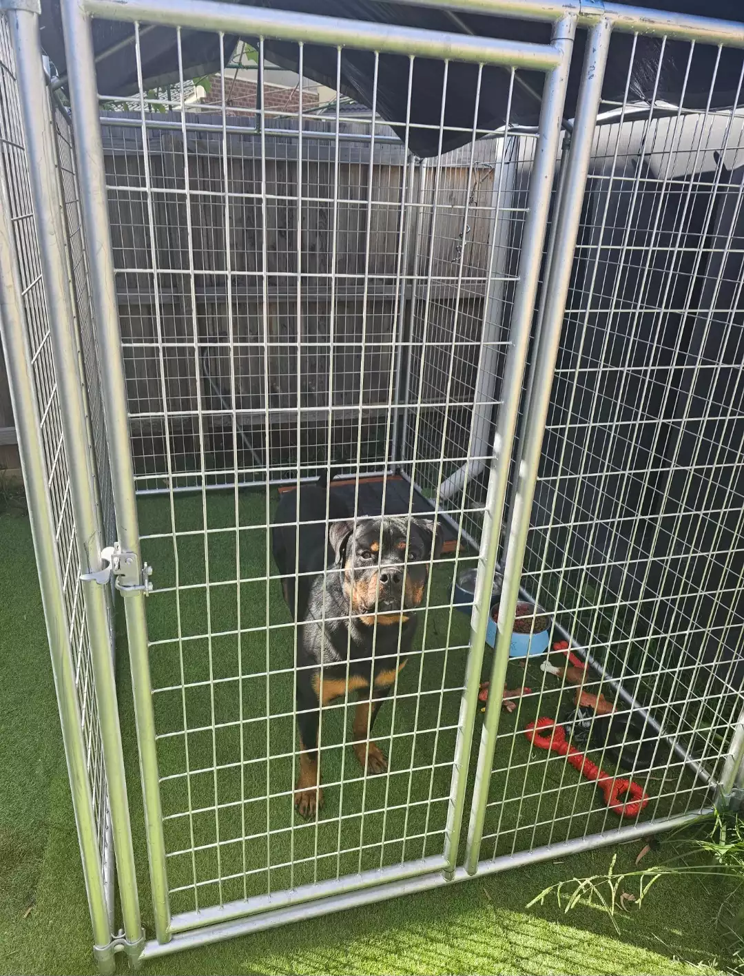 • Large dog cage – approx. 1.8m height x 1.8m width x 2.4m depth