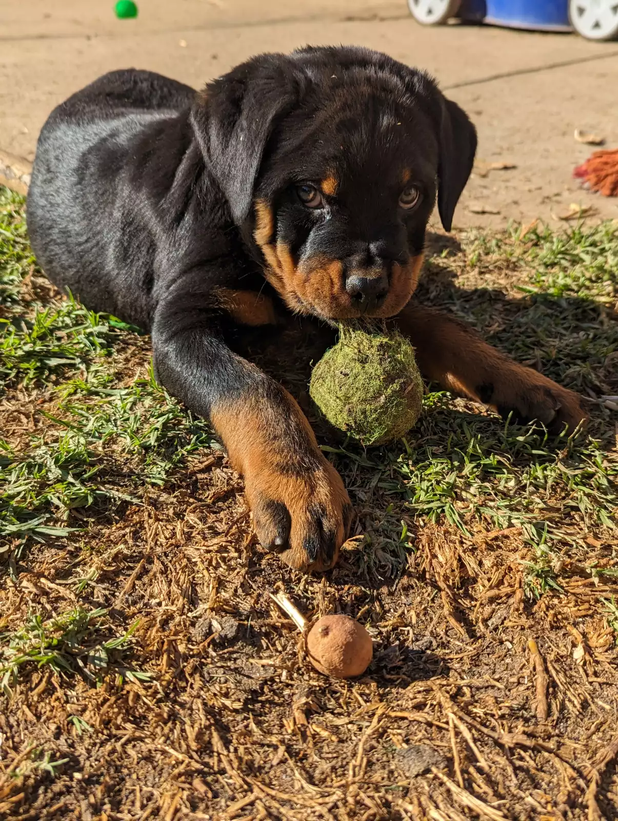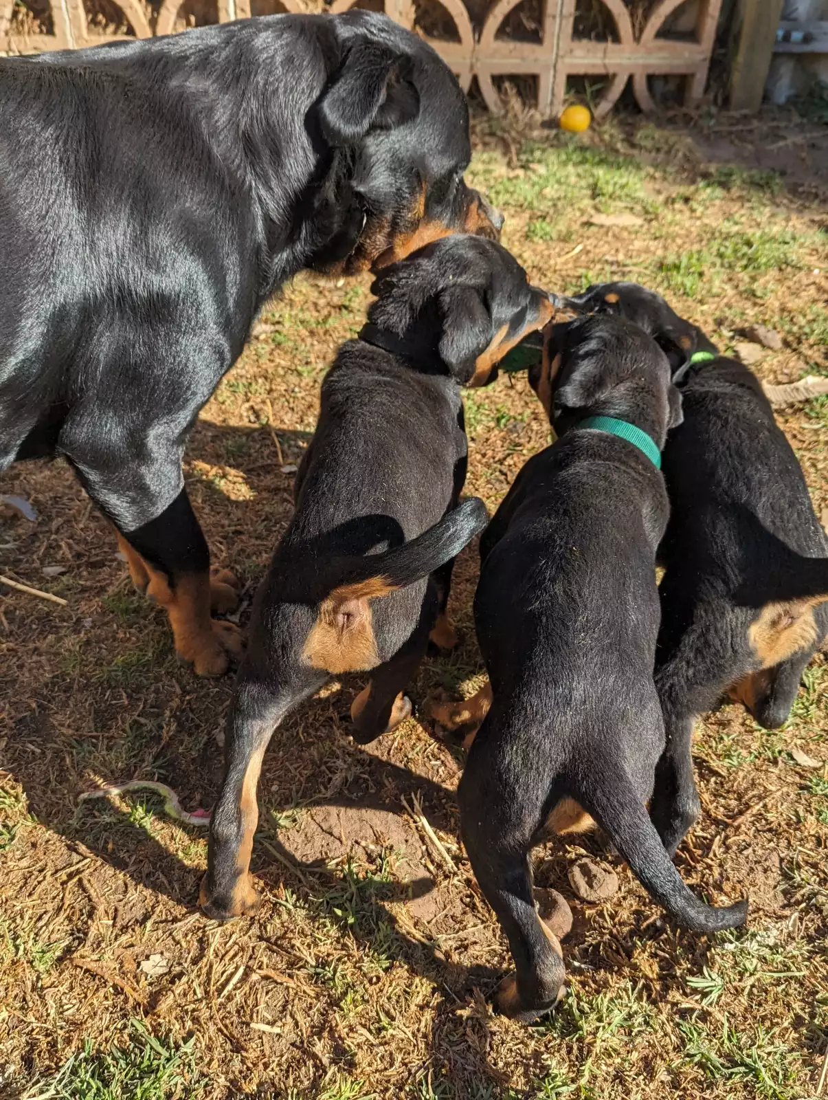 We own both parents and they are both 100% pure bred German Rotties, they have had their DNA tested and can provide report as proof. They are gentle giants and are both amazing with kids and have spent time with kids their entire lives. You are most welcome to meet them. Dad is 4 years old and is fully grown, while mum is still growing at 2 years old (they fully grow by 3 years old).