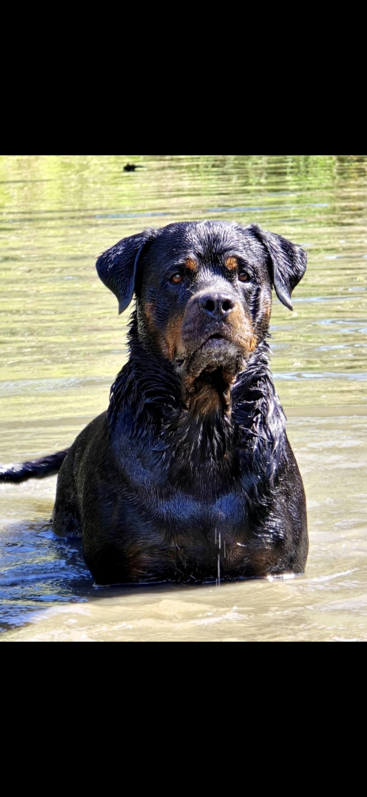 A little about us you won't find our dogs locked in pens or on chains. Our dogs are very much part of the family and live inside enjoying life with us whether it's going for a swim or driving around they are always with us.