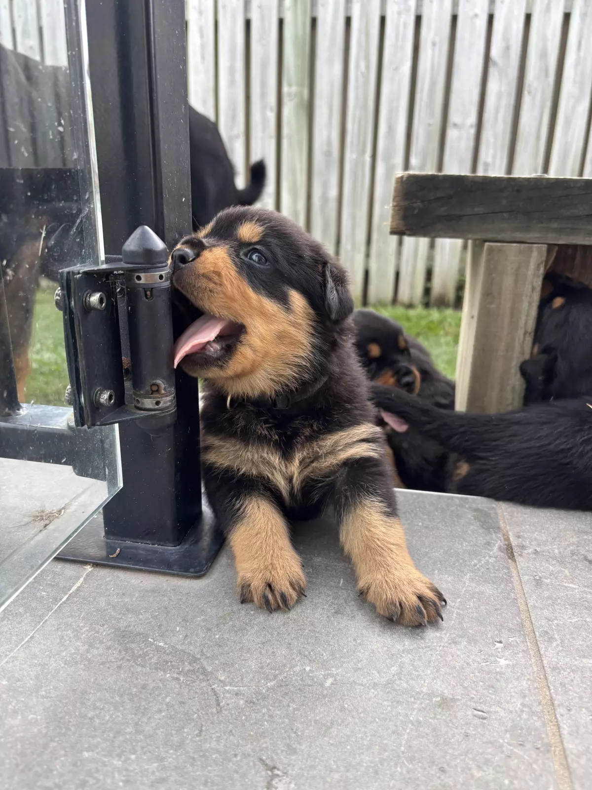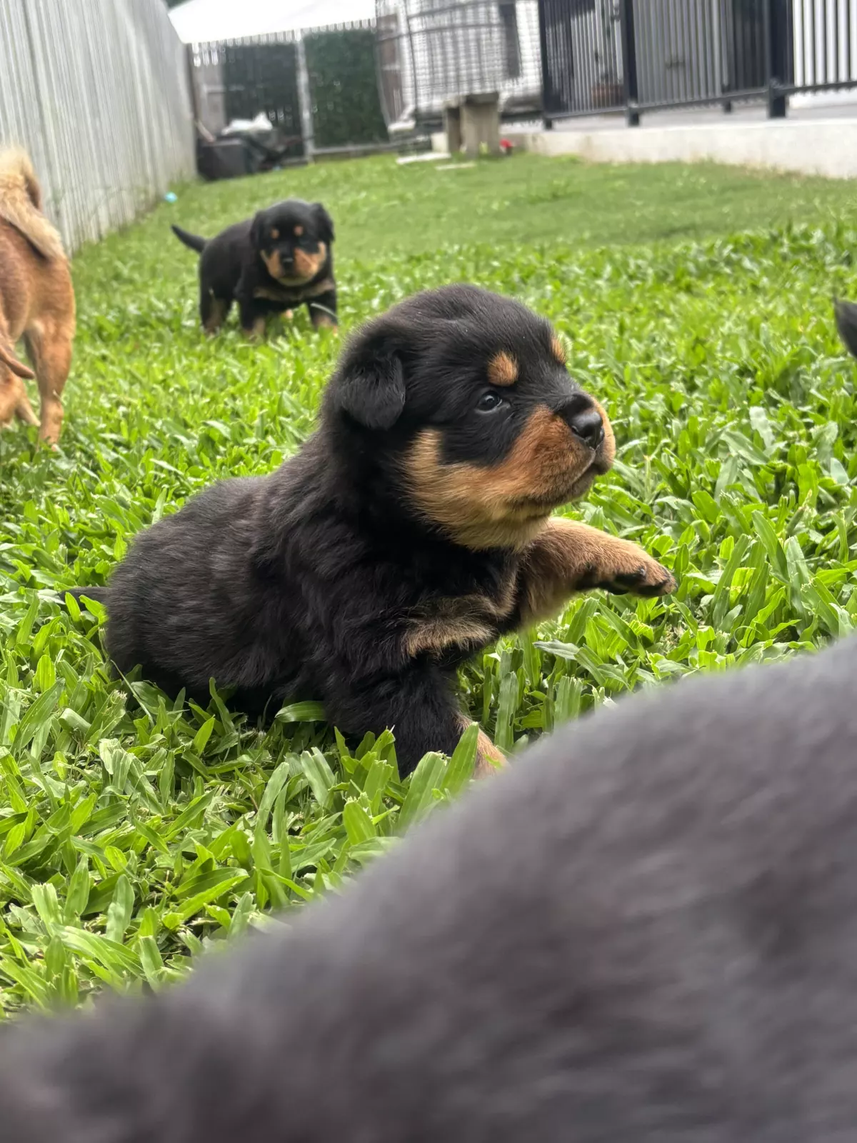Purebred Rottweiler Pups raised in a loving family environment. Handled daily. The pups are around kids and smaller dog breeds since birth.