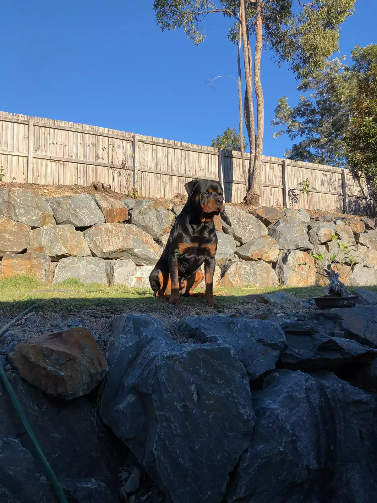 All the dogs have tails. The Rottweiler does not naturally carry the no tail gene.