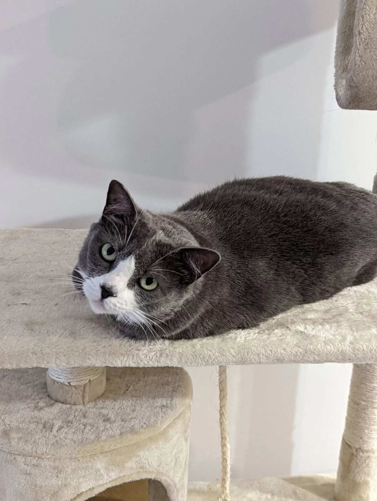 Bonnie, a seven-year-old sweetheart, is the perfect cat for anyone looking for a cuddly companion. She's never met a lap she didn't enjoy and is a beautiful grey and white female with a big purr and a heart full of love. She's also great with kids and other pets.
