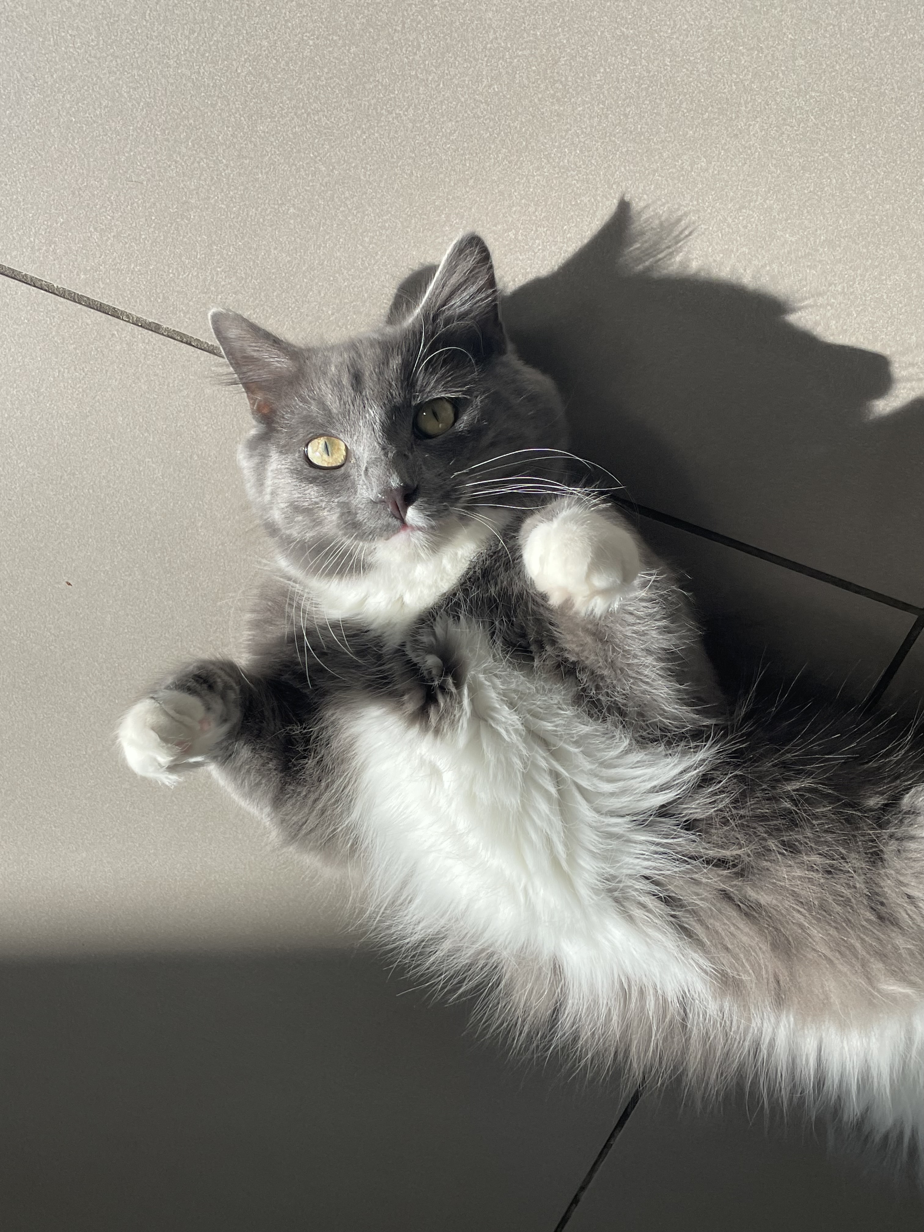 He’s a very affectionate boy once he feels safe — he loves cuddles, attention, and of course, food. While he can be shy at first and may take a little while to warm up to new people, once he does, he becomes incredibly loyal and loving. He enjoys being close to his humans, whether that’s curling up next to you or following you around the house.