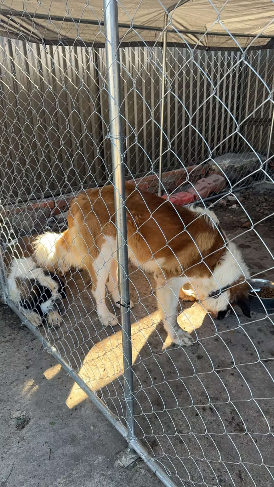 Dogs have access to: warm bedding, water at all times, ample space to exercise, natural light