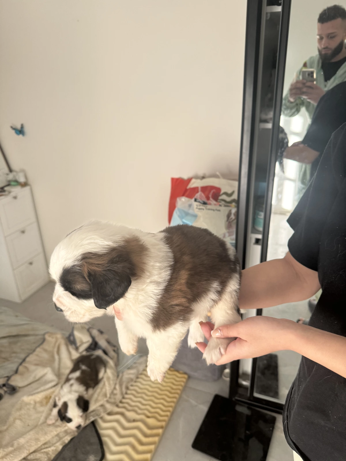 Both parents are large purebred Saint Bernards