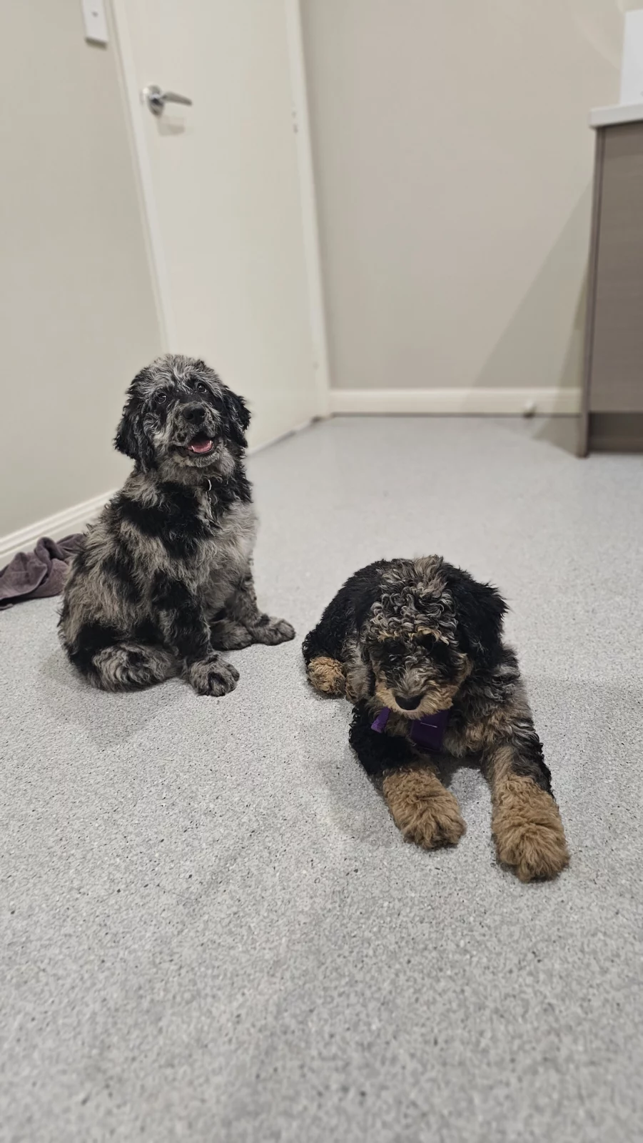 F1b Saint Berdoodles (Saint Berdoodle x Poodle) Only Merle Saint Berdoodles in Australia 🐾 🐾 1st and 2nd vaccination completed 🐾 Microchipped/wormed 🐾 DNA tested, sire Hip/elbow scored 🐾 Generous puppy pack included Aus Saint Berdoodles is a family registered business who specialize in the breeding of Saint Berdoodles here in Australia. Parents of pupppies are our very own bred Saint Berdoodle, Denver, and the outstanding male sire, Maverick, a blue merle standard poodle. Parents are hip/elbow scored, DNA tested, pups are raised in our family home and have been bought up with nothing but pure love. Please visit our Facebook page - Aus Saint Berdoodle Pack Instagram- saintberdoodles.of.nsw.aus Website - Australiansaintberdoodles.com.au No cost is spared with breeding and raising these beautiful puppies. They are estimated to reach approximately 25kg, standing just under knee height, they are non shedding and non druelling. Attached photos are of our 3 remaining puppies, Rhett, Morgan and Kelsey. Kelsey ❤️ - 900164002249371 $4000 Morgan 🐾 - 900164002249 $4000 Rhett 💙 - 900164002249388 $4000 Puppies come with extensive puppy pack. All puppies are weaned on Lyka Pet Food. Microchipped, vaccinated, wormed, reading to leave from the 14th October 2024. RPBA # 3502 Please do not waste my time if you are not genuinely interested. All puppies are sold with non breeding contracts and will be required to be desexed at 12 months of age. Do not enquirie if you are a breeder or intend to breed I will not sell you one of our puppies.