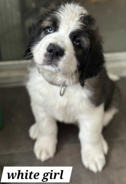 8 weeks old. Saint Bernards make amazing family pets they are loyal and loving and just want to hang with their person/people. We have a stunning litter of quality lines pure breed Saint Bernard Puppies available