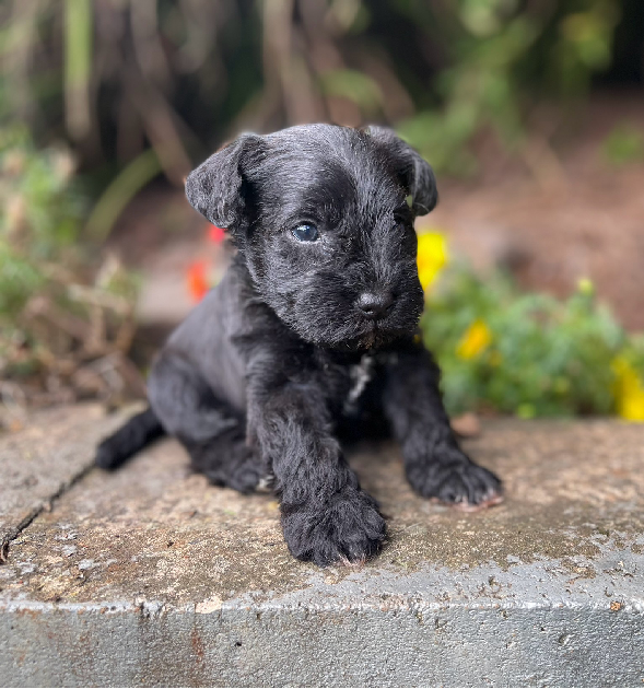 Mother is a purebred Black Miniature Schnauzer & Father is a purebred Black/Silver Miniature Schnauzer.