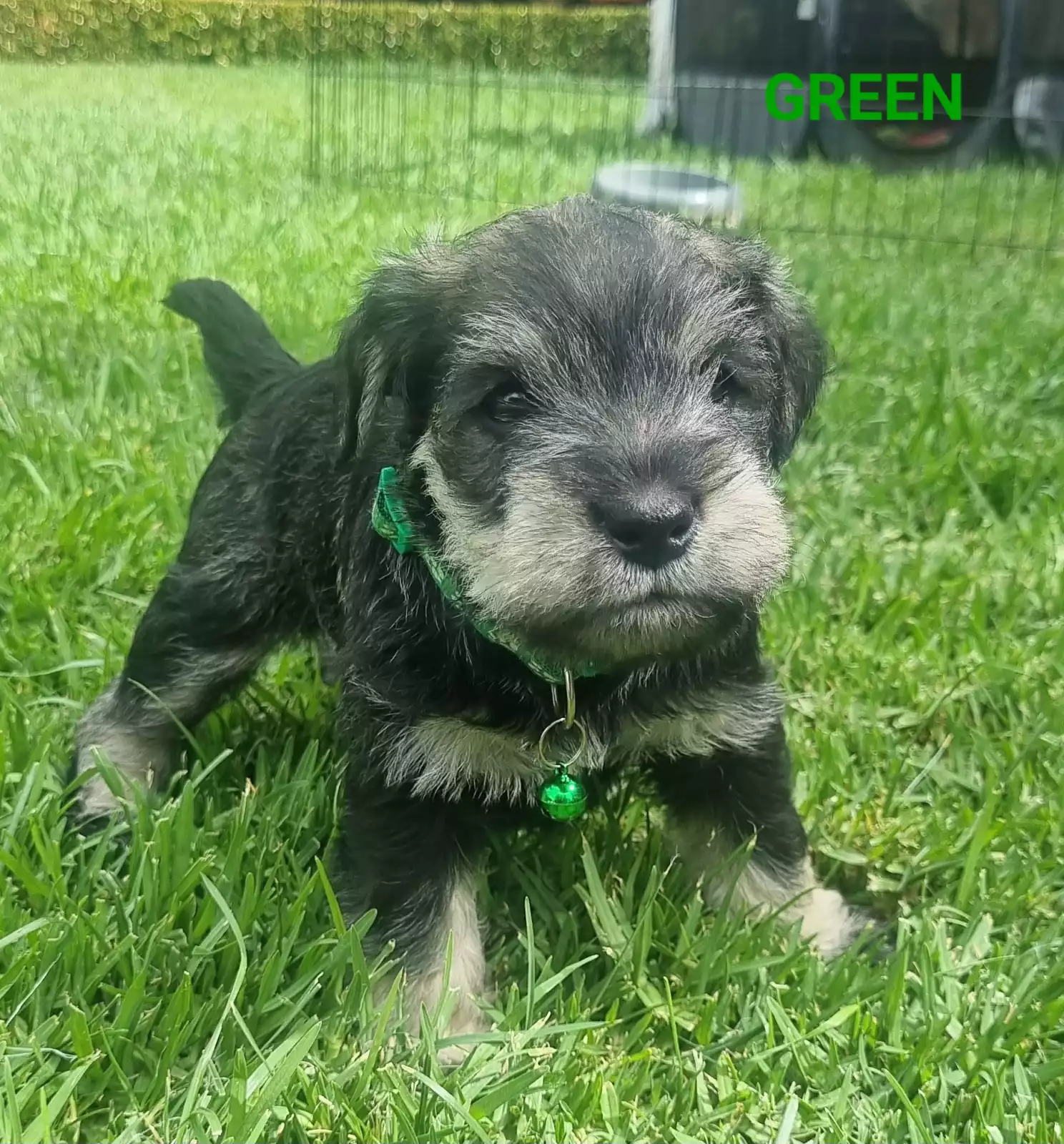 We have one salt and pepper boy (green collar) and two salt and pepper females (pink and light green collars) seeking new homes.