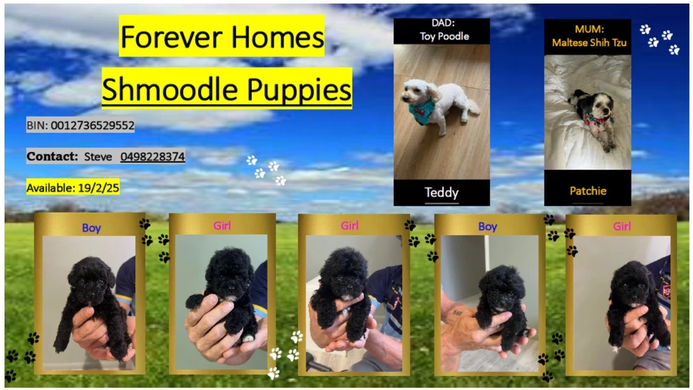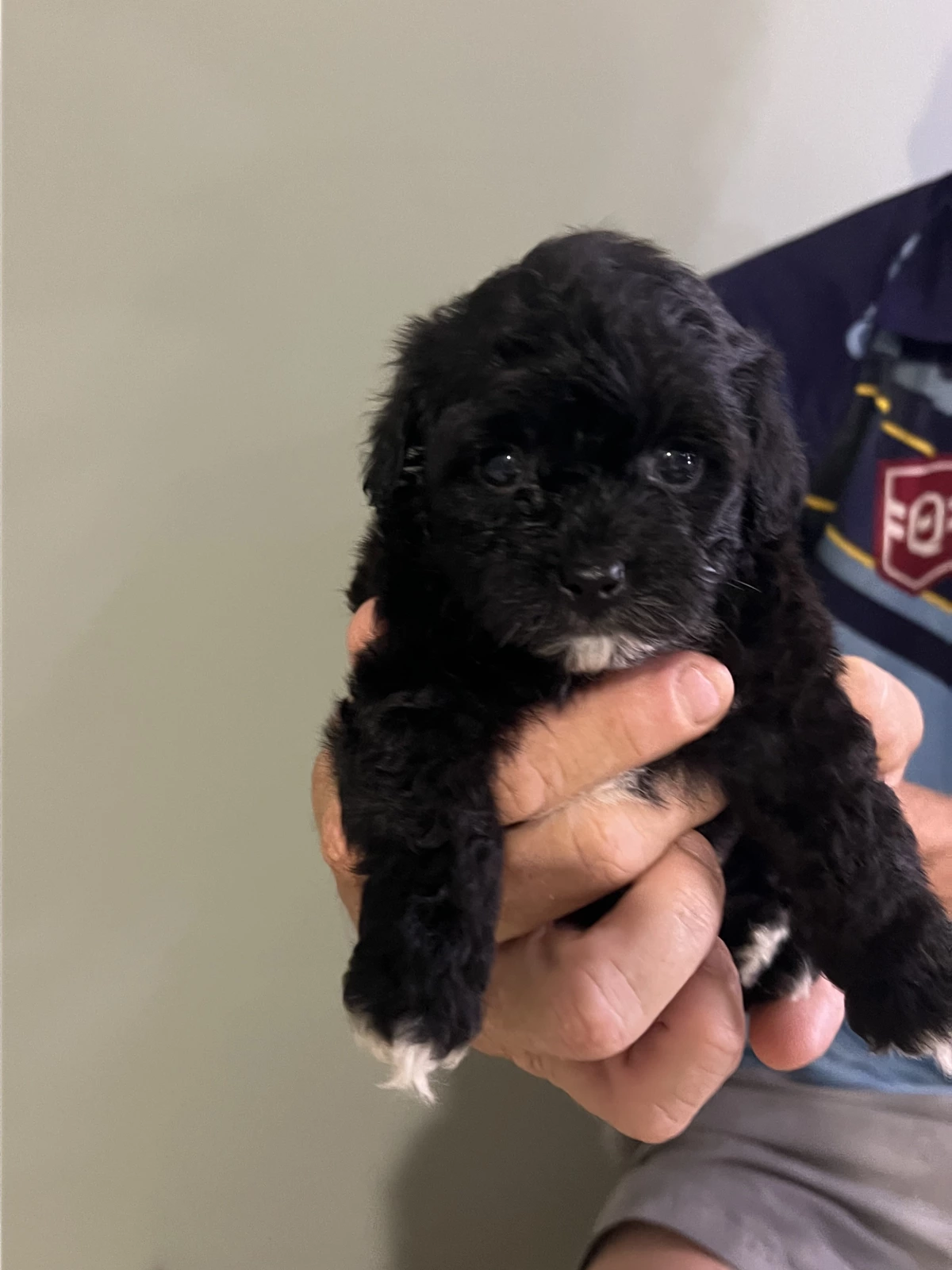 Shmoodles all black with white markings. 3xfemale 2x male. Available 19/2/2025