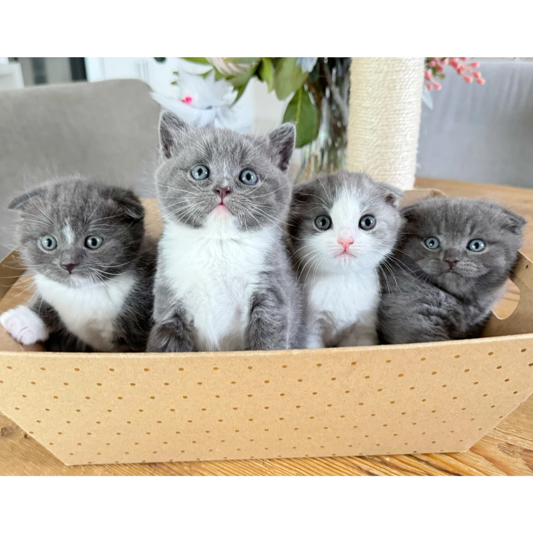 Welcoming expressions of interest for our half British Shorthair, half Scottish Fold kittens born on November 8th. These little treasures are showered with care, playtime, and daily cuddles, ensuring their gentle nature blossoms