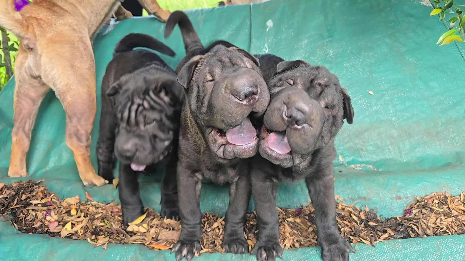 We have one handsome brindle male Shar Pei x American Staffy looking for his forever home. He has a striking brindle coat and a strong, compact build, already showing a confident and affectionate personality.