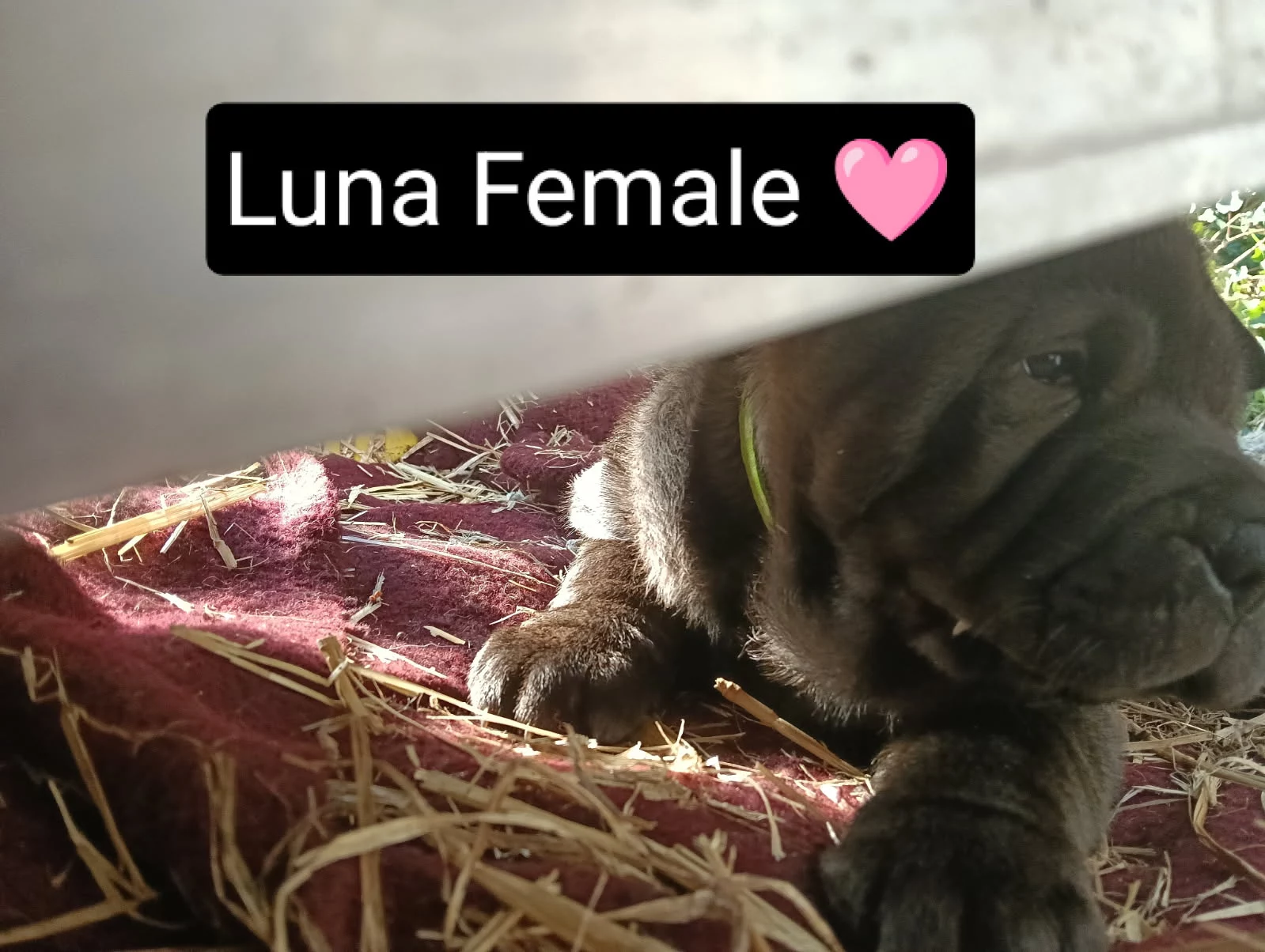 They all have short haired version of Malamute undercoat/overcoats and usually flea free wooly coats, also inherited Malamutes sleepy hiccups trait. Their mothers mothers wrinkles and crinkles are main physical trait. Each pup shows excellent mix of temperament with Malamutes cuddlyness and mothers alertness.