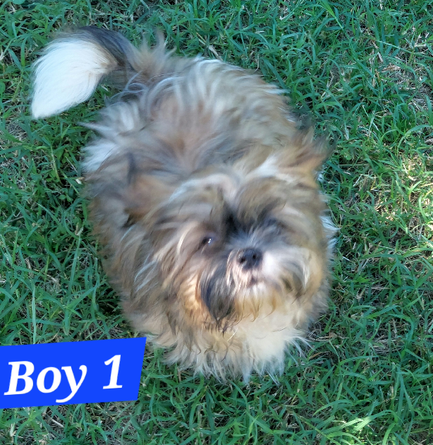FOZZIE Boy 1 is a lovely tri-colour Shih Tzu x Maltese. He has a quiet gentle temperament whilst still having a cheeky puppy playfulness. He was the smallest in the litter so he is teeny compared to all the others.