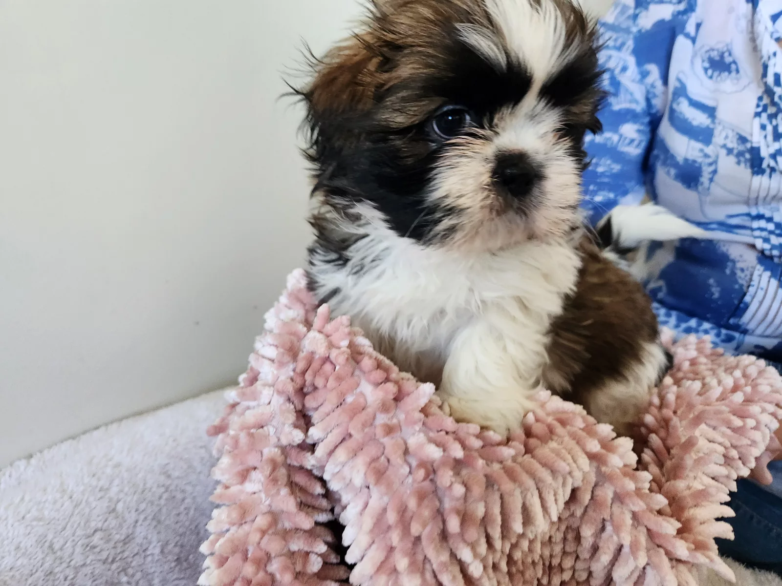 Layla is our loving, tri-coloured Shih Tzu with a heart of gold. She’s a true snuggle bunny who adores children and has a calm, affectionate nature. Her puppies have been lovingly raised in our family home, handled from birth, and socialised daily — making them confident, happy little companions, ready to join family life.