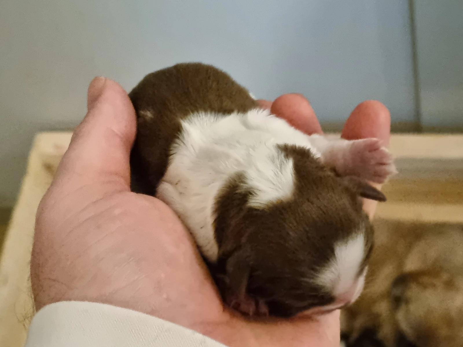 1 all dark brown male (will likely turn liver colour or gold like his mum)