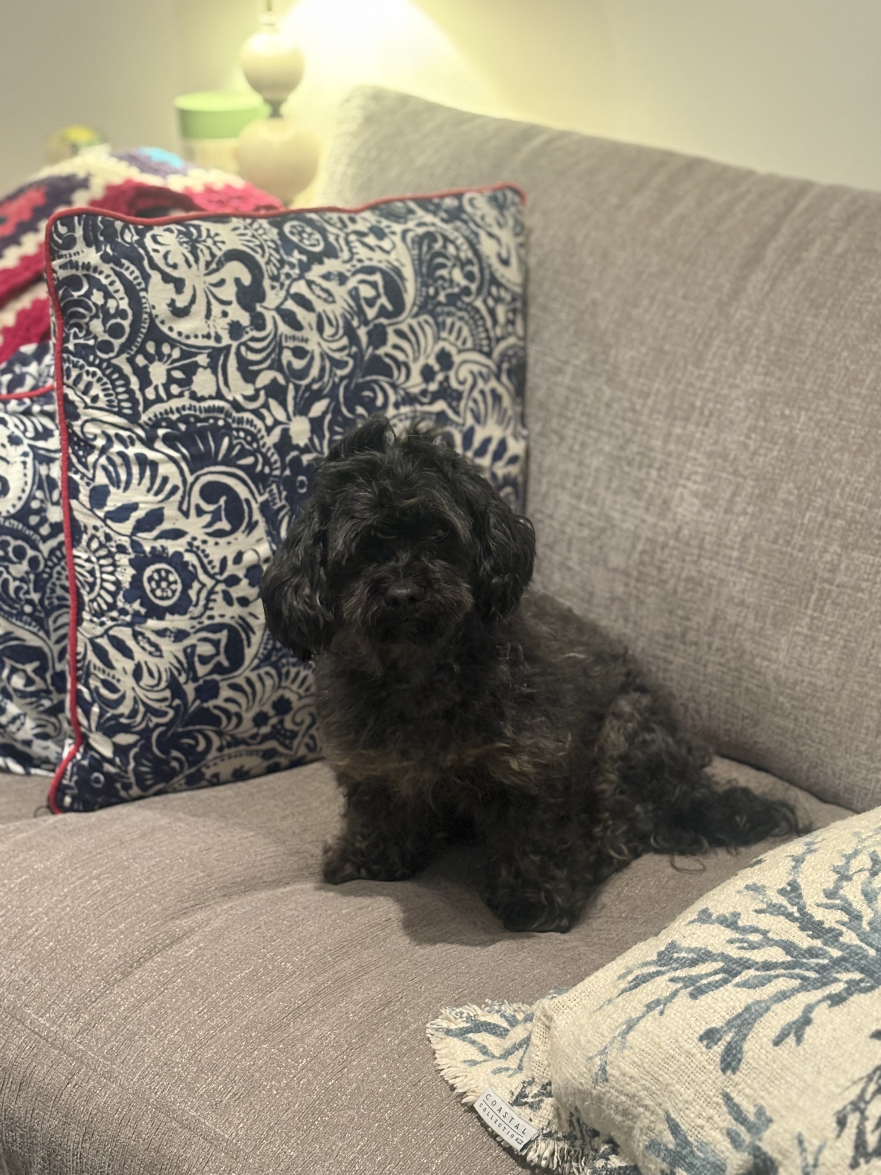 He’s a Maltese Shih Tzu crossed with a Poodle, and doesn’t shed. Frankie is an inside dog who also enjoys outdoor play in the park or beach. Loves coffee dates and visiting friends.