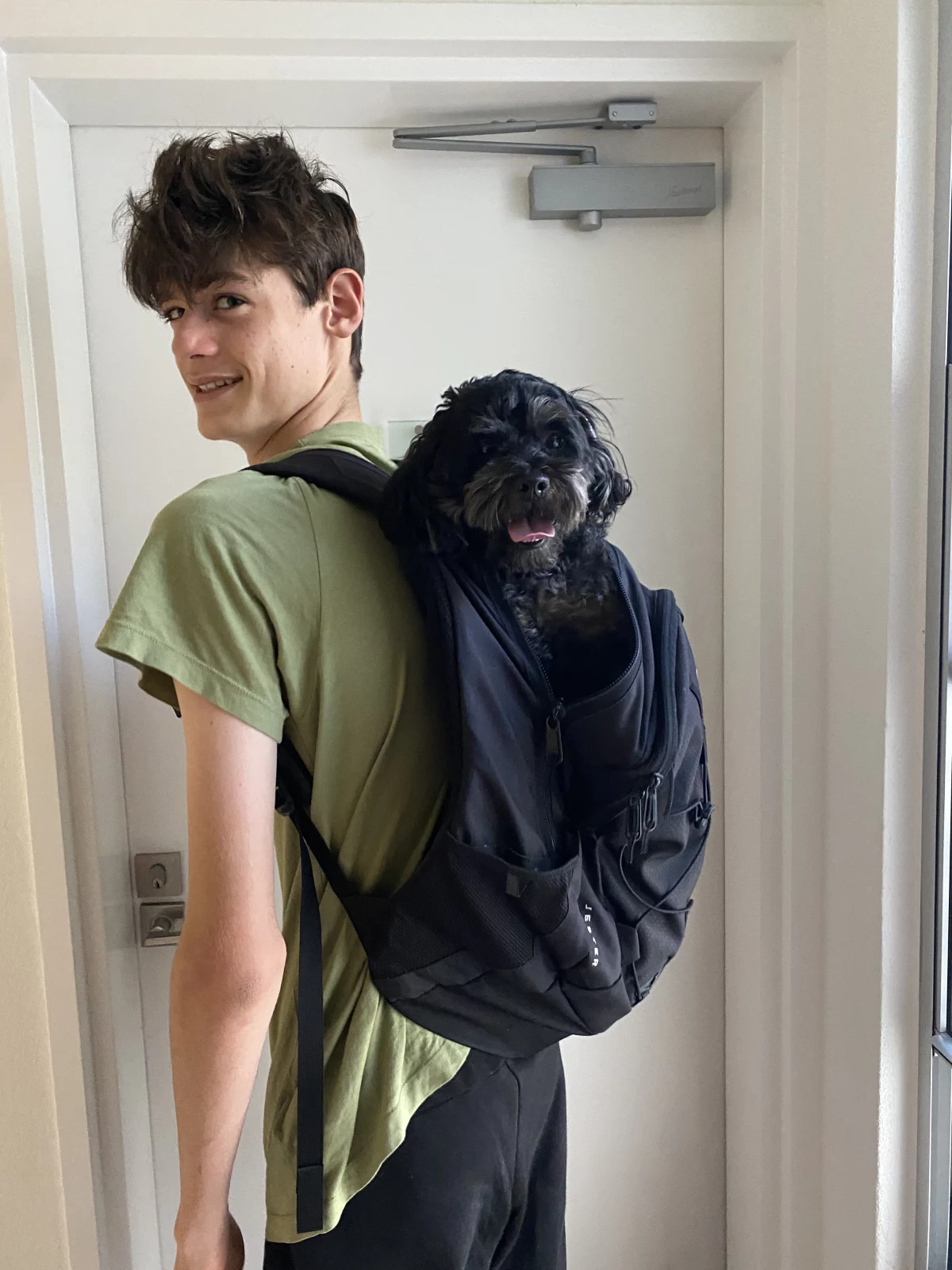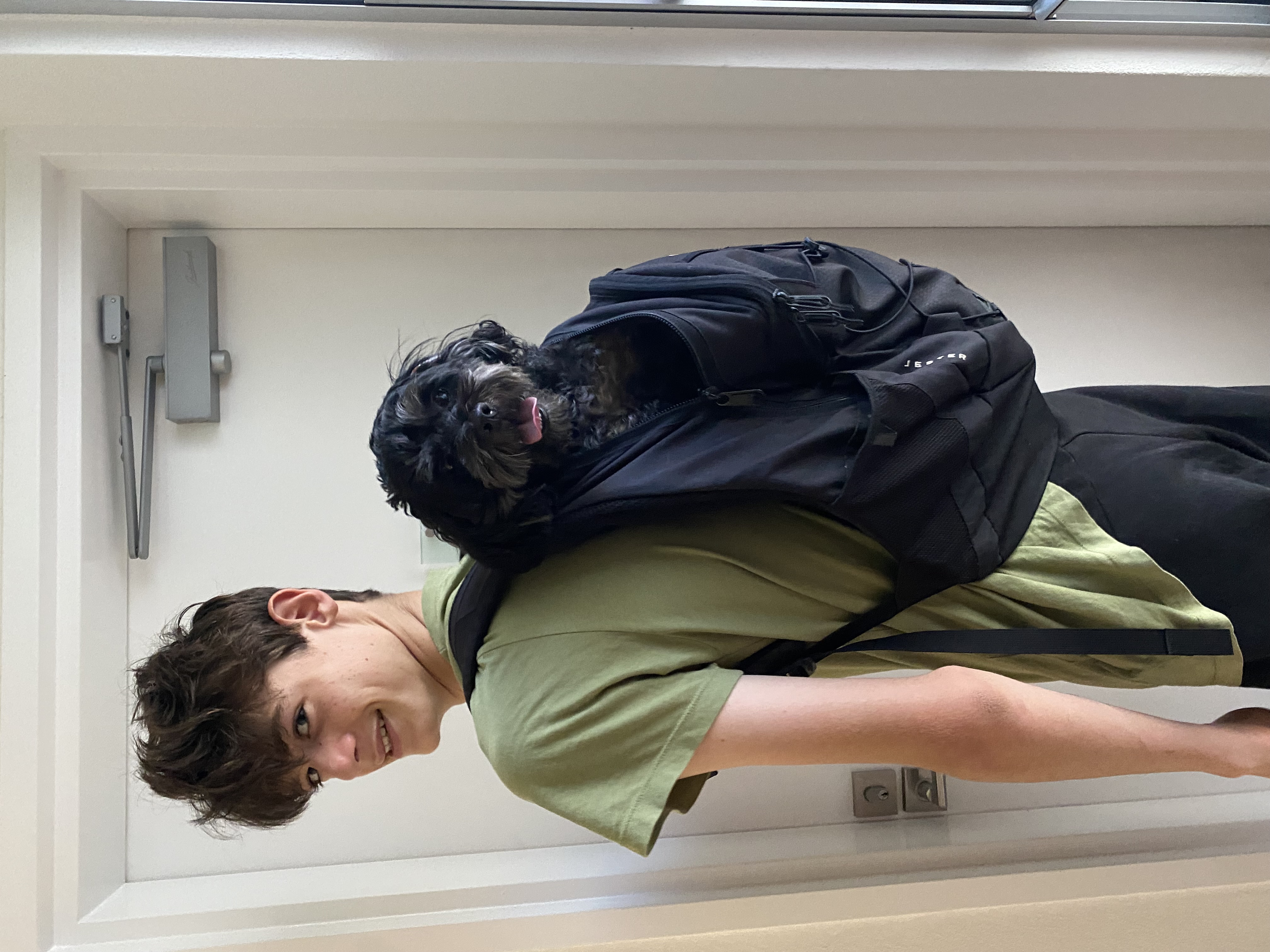 Has grown up in an apartment without a yard and comfortable being at home all day while we’re out at work/school without any accidents. He’s affectionate, snuggly, and absolutely adorable.