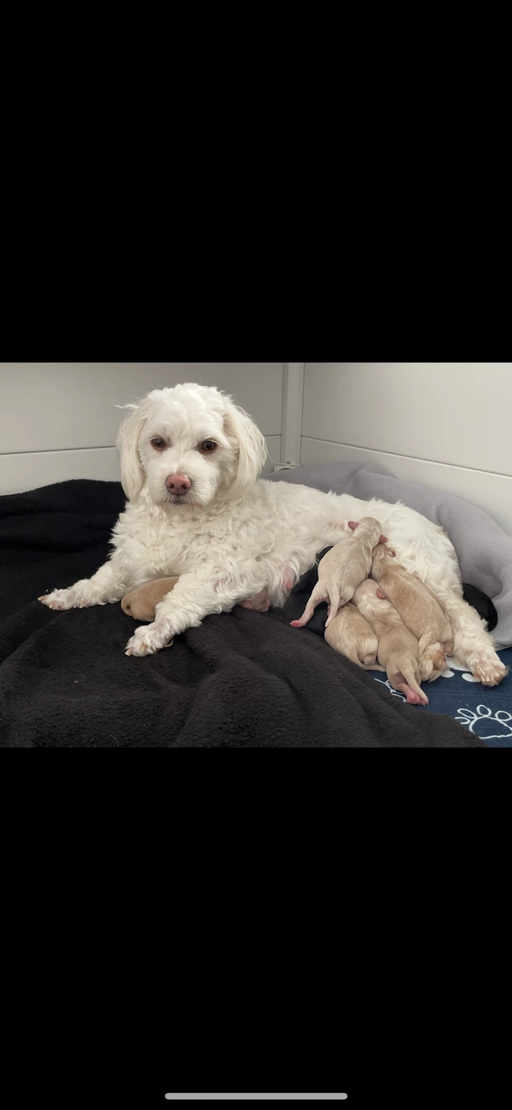 Mother of the puppies is named Blondie and is a Maltese x Shih tzu and is a very sweet nanny dog.