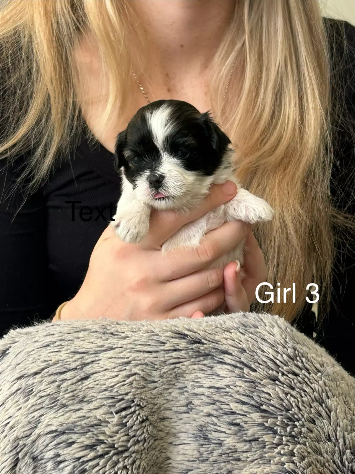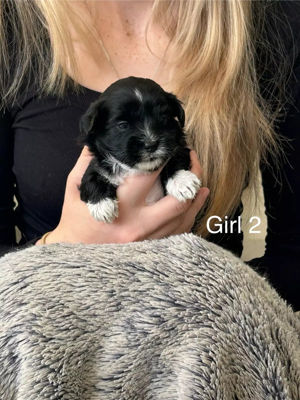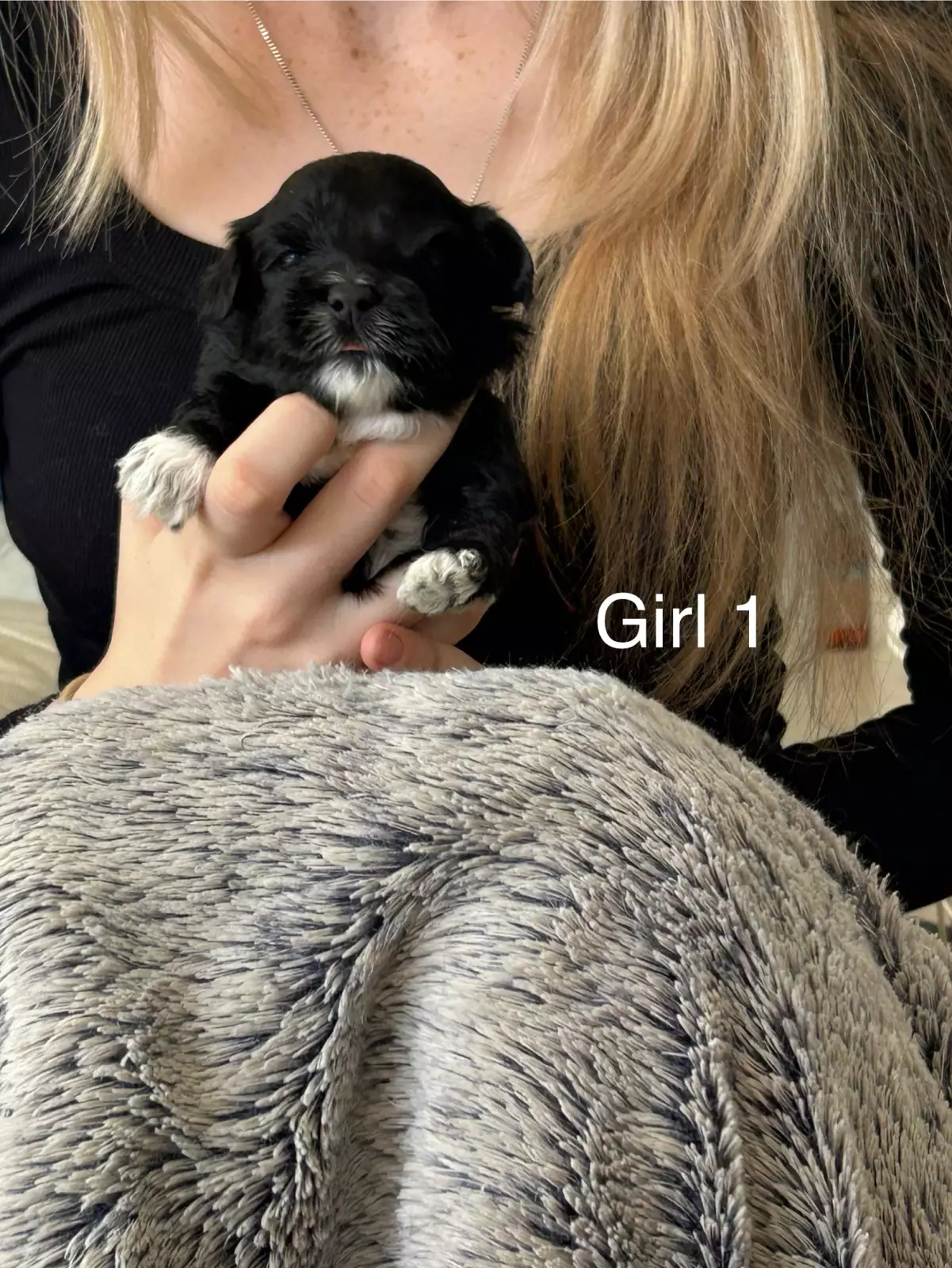 Girl 1: black with white paws and chest
