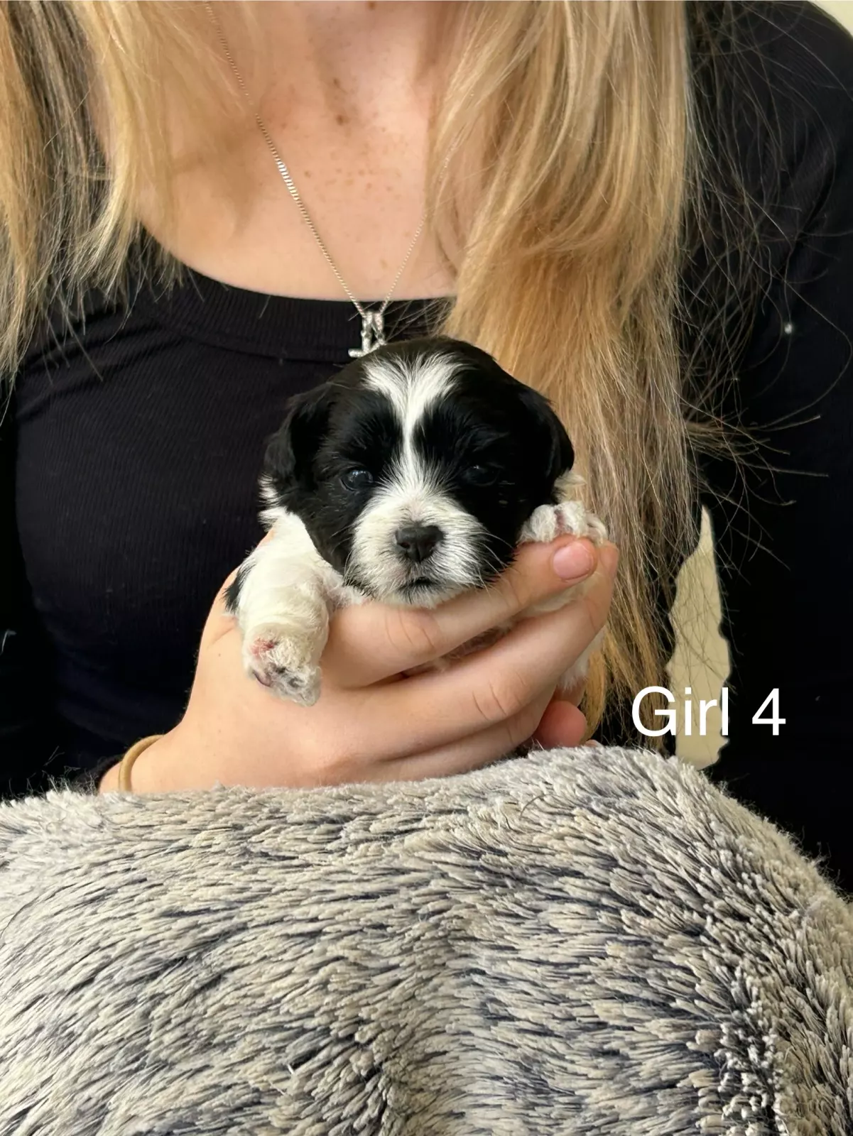 Girl 4: white and black with bigger spots